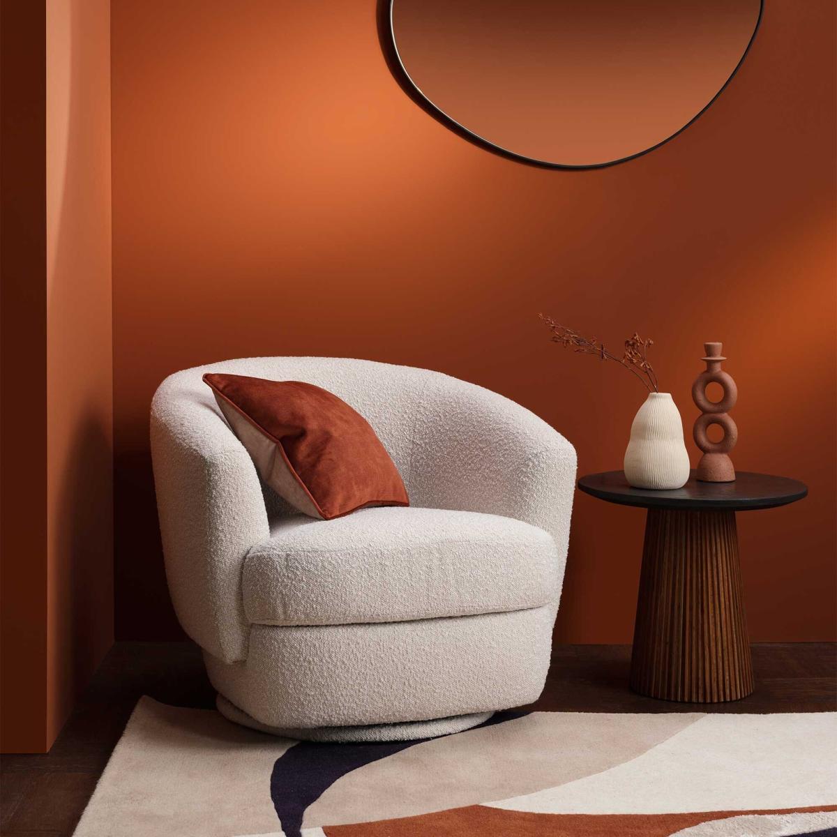 I’m a fan of this Arman swivel for its compact, curving silhouette and tactile boucle upholstery - it immediately lifts a room without dominating it. The neutral tone suits Scandi-inspired schemes, modern minimalism and even industrial loft spaces, working as a soft focal point against darker walls or raw-brick features. To style, position it near a slim metal side table and an arched floor lamp for a relaxed reading nook. Add a contrasting cushion or a leather-trimmed throw to introduce another texture, then layer with a low-pile rug in a similar neutral palette to ground the look. Its 360° base also makes it ideal for conversational layouts, so don’t be afraid to angle it towards your main sofa rather than the TV.