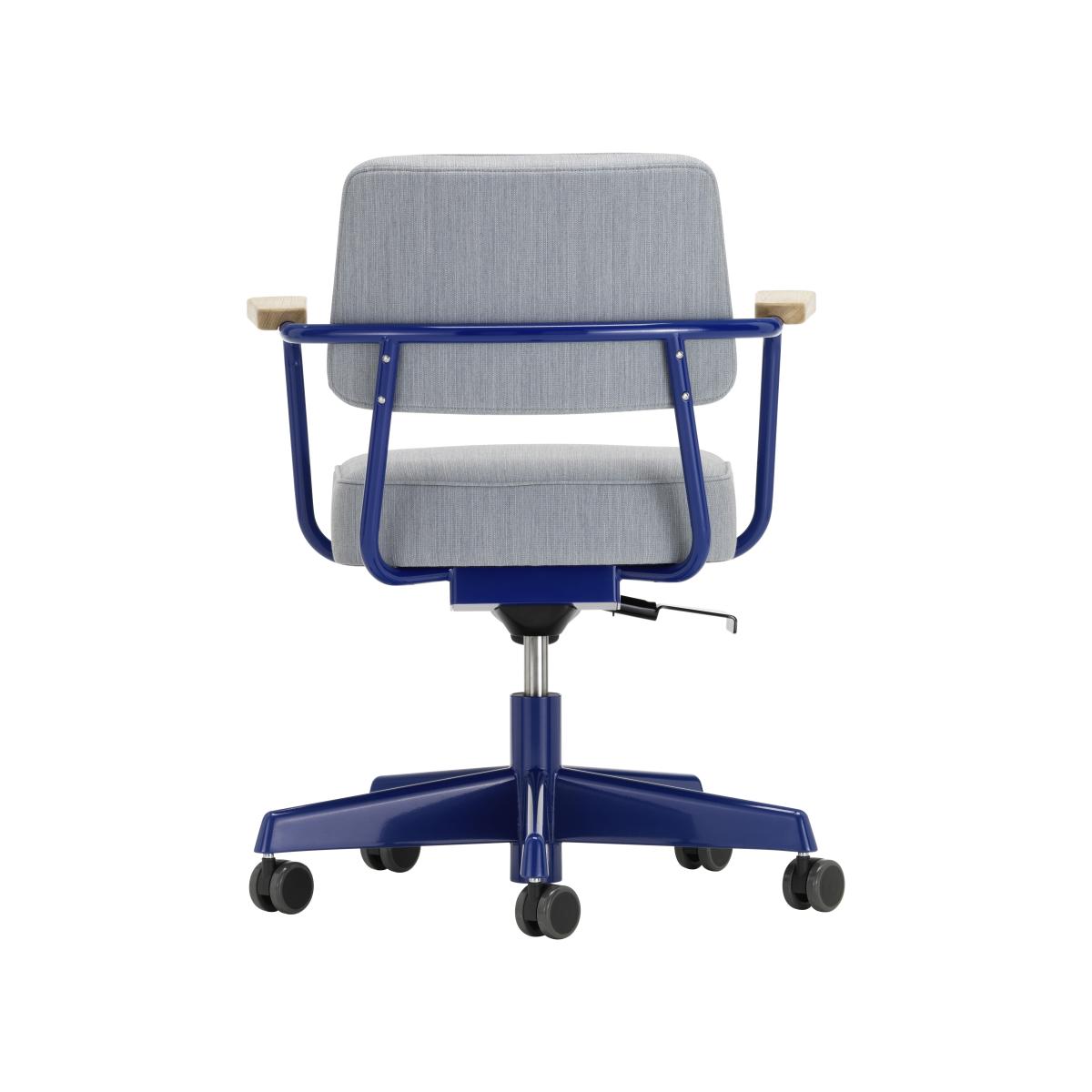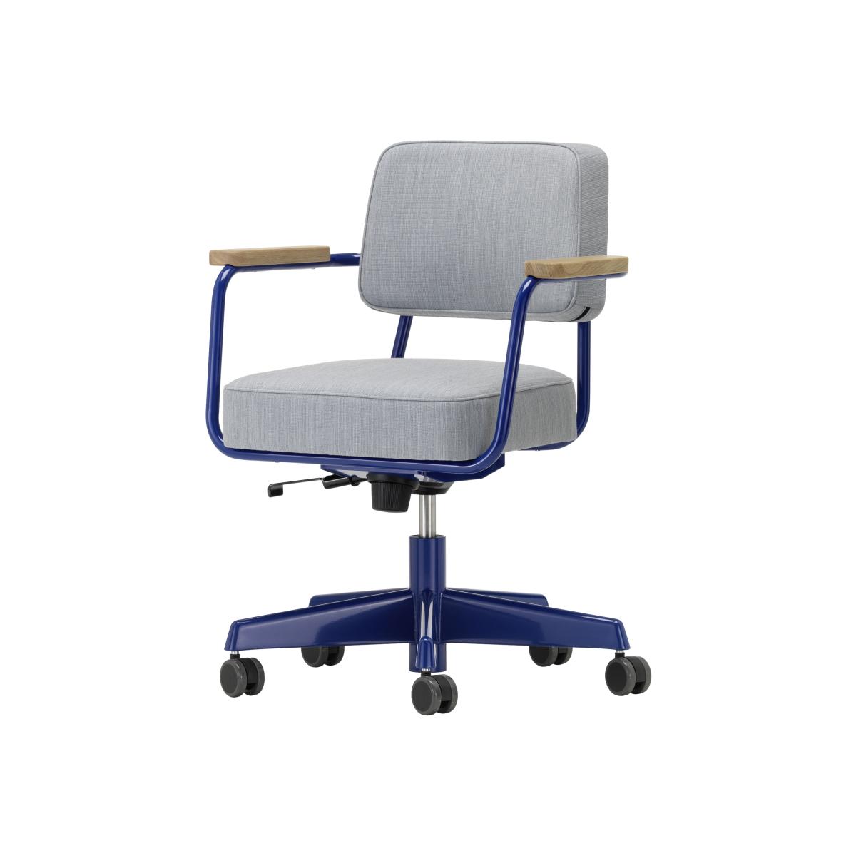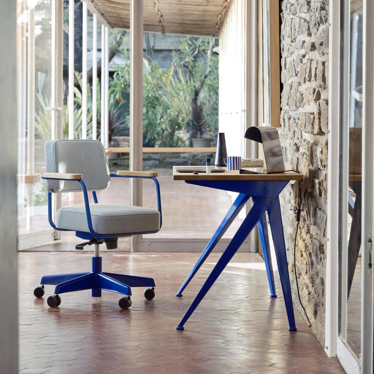 Treat yourself to an ORIGINAL iconic piece by Vitra. An original will always hold its value. It will stay with you for your whole life and outlive you, being passed on to the next generation. A self-taught architect with a passion for industrialising buildings, Jean Prouvé (1901 - 1984) is now considered a leading architect and one of the greatest designers of the 20th century, on a par with Le Corbusier and Charlotte Perriand. A pioneer, Prouvé played a major role in the development of mass production techniques in the European post-war modernist movement. Jean Prouvé developed a "constructive thought" based on a logic of series manufacturing and functionality to create an aesthetic that’s purified of all artifice. The designer has a wide portfolio of designs ranging from prefabricated homes to furniture for offices, classrooms and interiors. Jean Prouvé's creations have become icons of the post-war period and have spanned the whole century. Developed by Jean Prouvé in 1951, the Direction Pivoting Armchair is a typical example of the distinctive structural aesthetics of his designs. It combines simple surfaces with a comfortable seat and backrest, thus forming an architectural entity. This armchair on wheels has a swivel seat which is infinitely height-adjustable by means of a gas spring. The backrest has a rear tilt mechanism that adapts to the user's weight (can be locked in the upright position). Combined with generous padding, these features ensure great comfort. This chair is ideal for any type of workplace or home office. The understated character of the armchair suits a wide variety of interiors. Its ample padding, as well as its armrests in oiled solid wood, suggest welcoming comfort. Comes in a multitude of colours: please ask us.