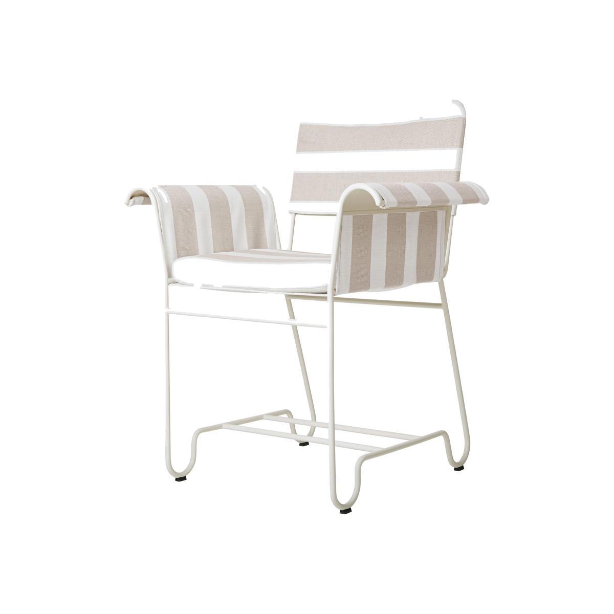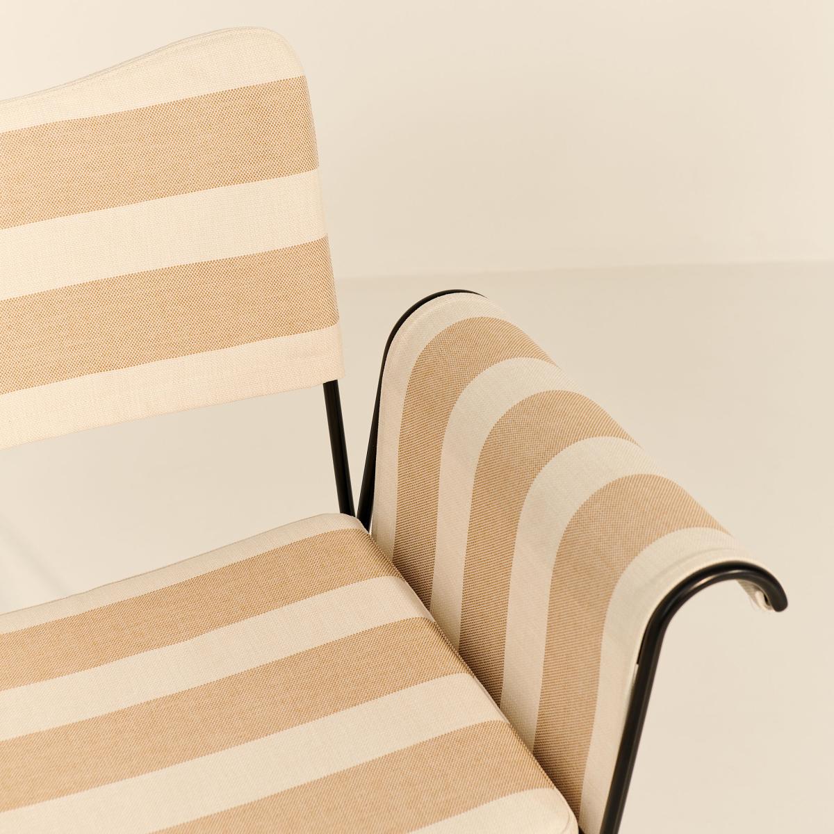 Mathieu Matégot, a famous Hungarian designer, is one of the key players in post-war design, making his mark on 1950s style. Now reissued, Mathieu Matégot’s creations remain timeless: design classics! His stroke of genius was to use, from 1945, before anyone else, in an original way, perforated sheets, a material discovered during his captivity in Germany. Designed in the 1950s, the Tropique collection captures the timeless glamour and exotic luxury of outdoor living on the French Riviera in the mid-20th century. More than 50 years after its creation, and 20 years after the death of its creator, GUBI is proud to pay tribute to Mathieu Matégot by relaunching one of his most popular projects which had not been produced for decades. So Gubi is giving a new generation the chance to live “la dolce vita” as Matégot had imagined it… Developed shortly after his return from the Second World War when he settled in Paris, the Tropique collection was a great success and allowed Matégot to establish his reputation as a designer. The exotic, refined spirit of these curved pieces blends perfectly with a natural environment and outdoor lifestyle. Tropique includes an armchair and a dining table. The structure is made with thin curved steel rods. The curved shapes that punctuate the legs are the signature of Matégot’s style and the distinctive sign that unites the collection, forming a clear and coherent whole. The seat and back of the armchair are made of an external fabric suspended from the structure like a hammock. The suppleness of the fabric offers great comfort reinforced by a soft seat cushion. The curved armrests and bottom of the backrest are highlighted by fringes which bring a refined, playful dimension to the armchair. The fabric seat and back can be easily removed and replaced to extend the life of the chair.