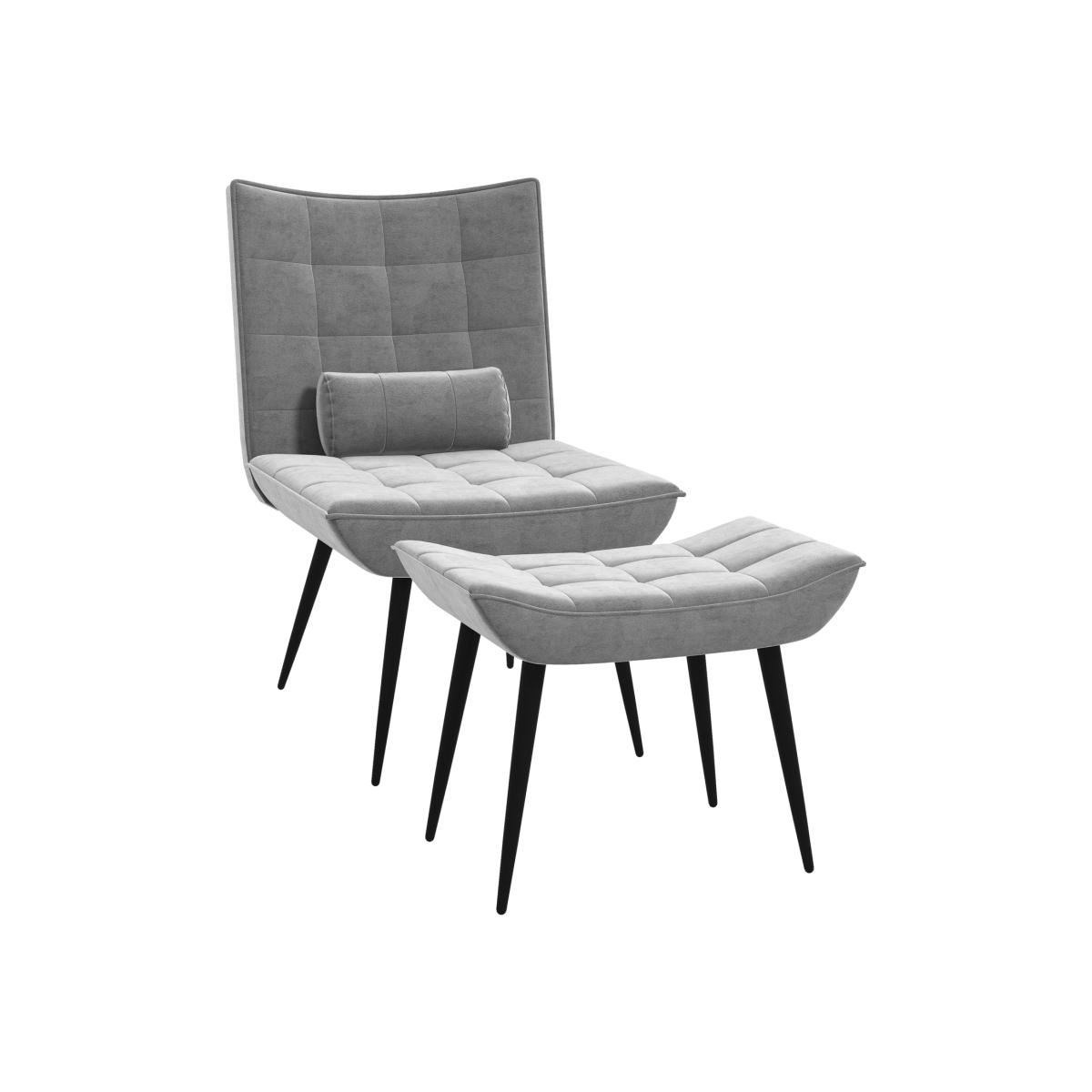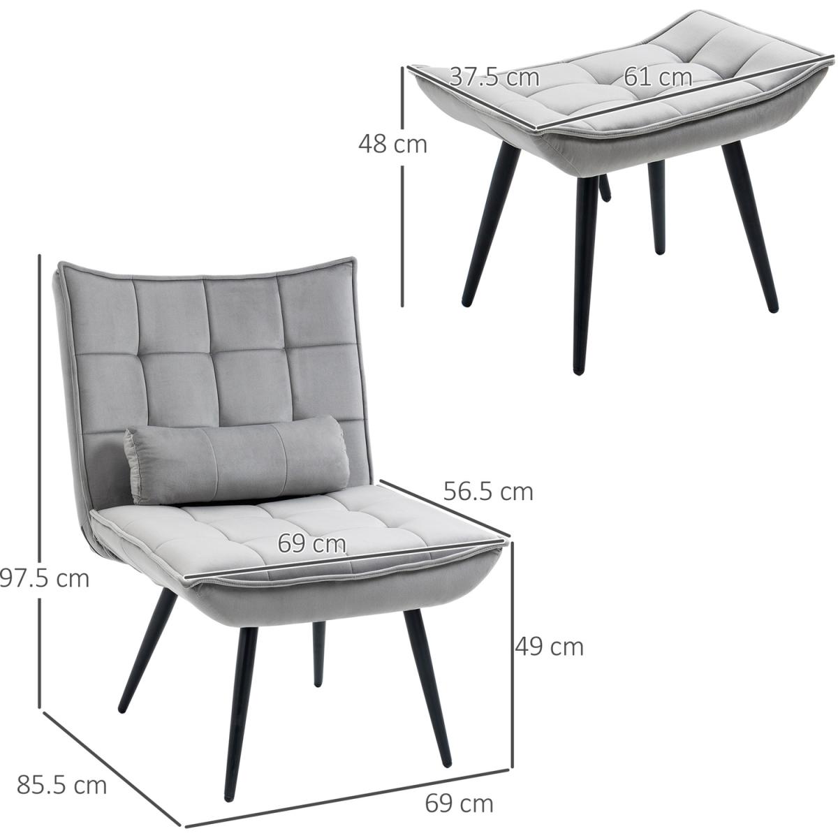 Use where Use this occasional chair and footstool set in your living room corners, guest bedroom and sunroom where you can unwind while enjoying cocktails, or as an extra chair at your next party... The options are endless... Crafted into a wide and curved seat and armless design, with thick padding and velvet feel upholstery for comfort whilst seated. Four steel legs in a black finish for extra strength and balance. Sit back and relax in this accent chair with ottoman from HOMCOM.