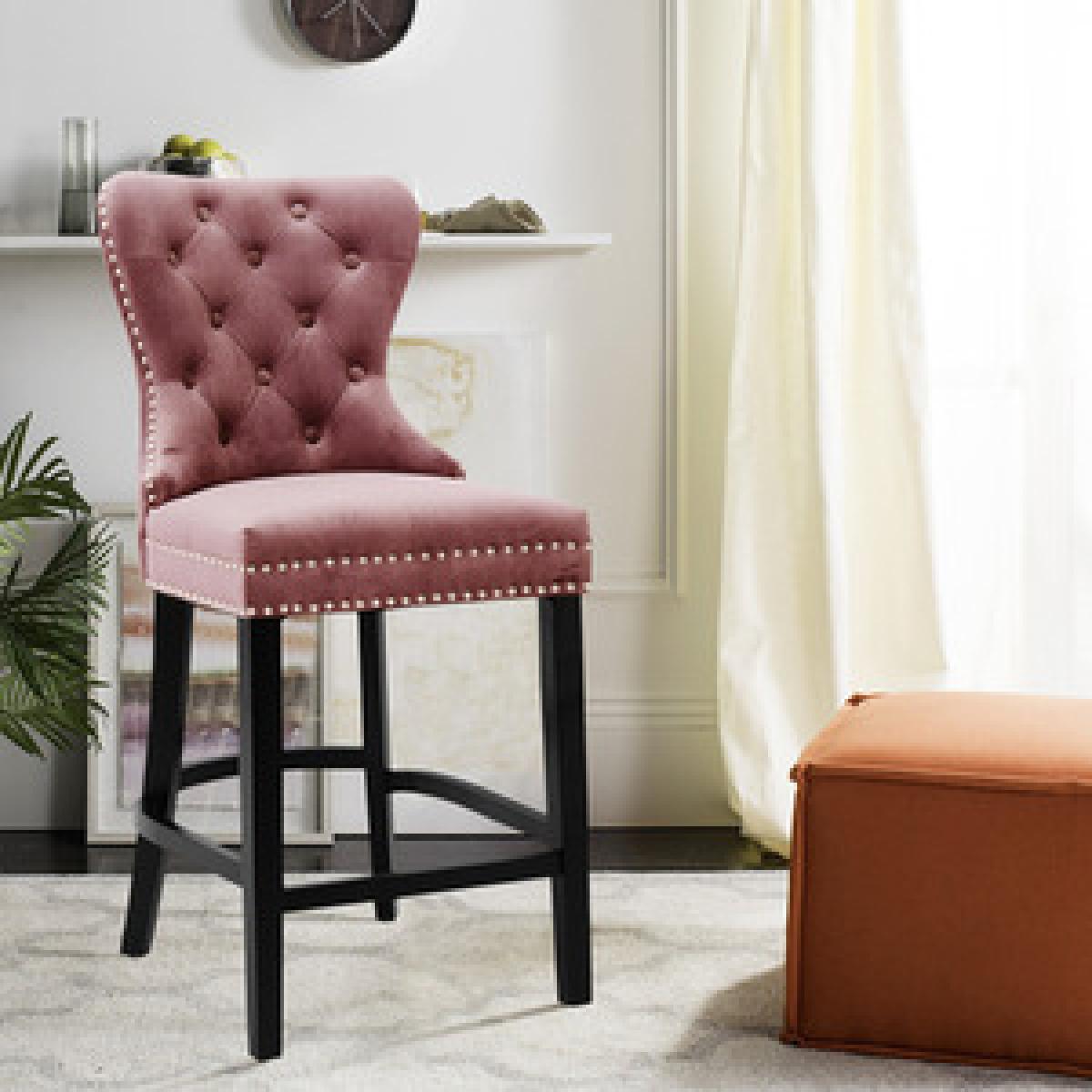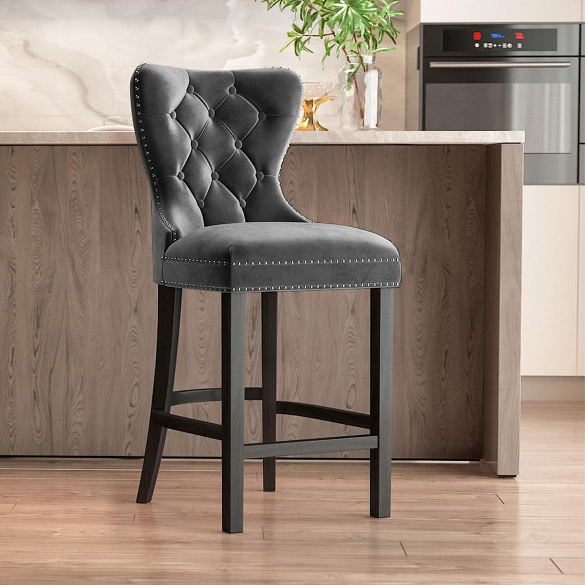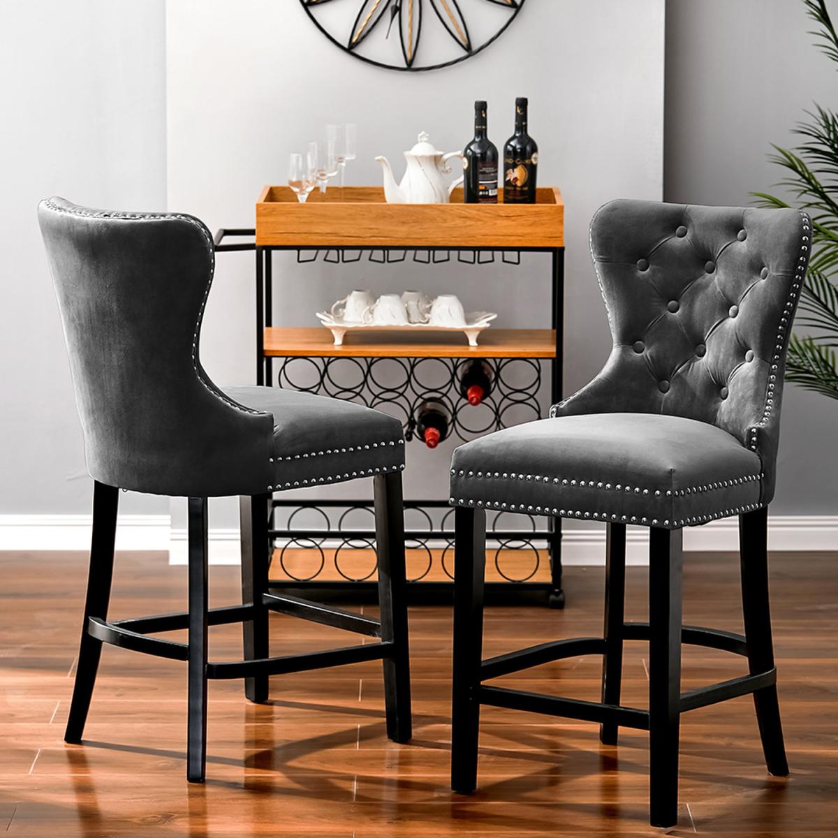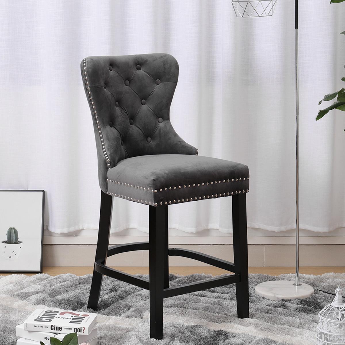 Made of velvet with sponge padded which is breathable and comfortable. Thick padded seat and durable High-back with modern design, the bar chair give a more comfortable feel for the waist and sitting, which help to keep your back supported and aligned. The front footrest is more sturdy and resistant to wear, with rubberwood legs and a seat frame for stability and durability.