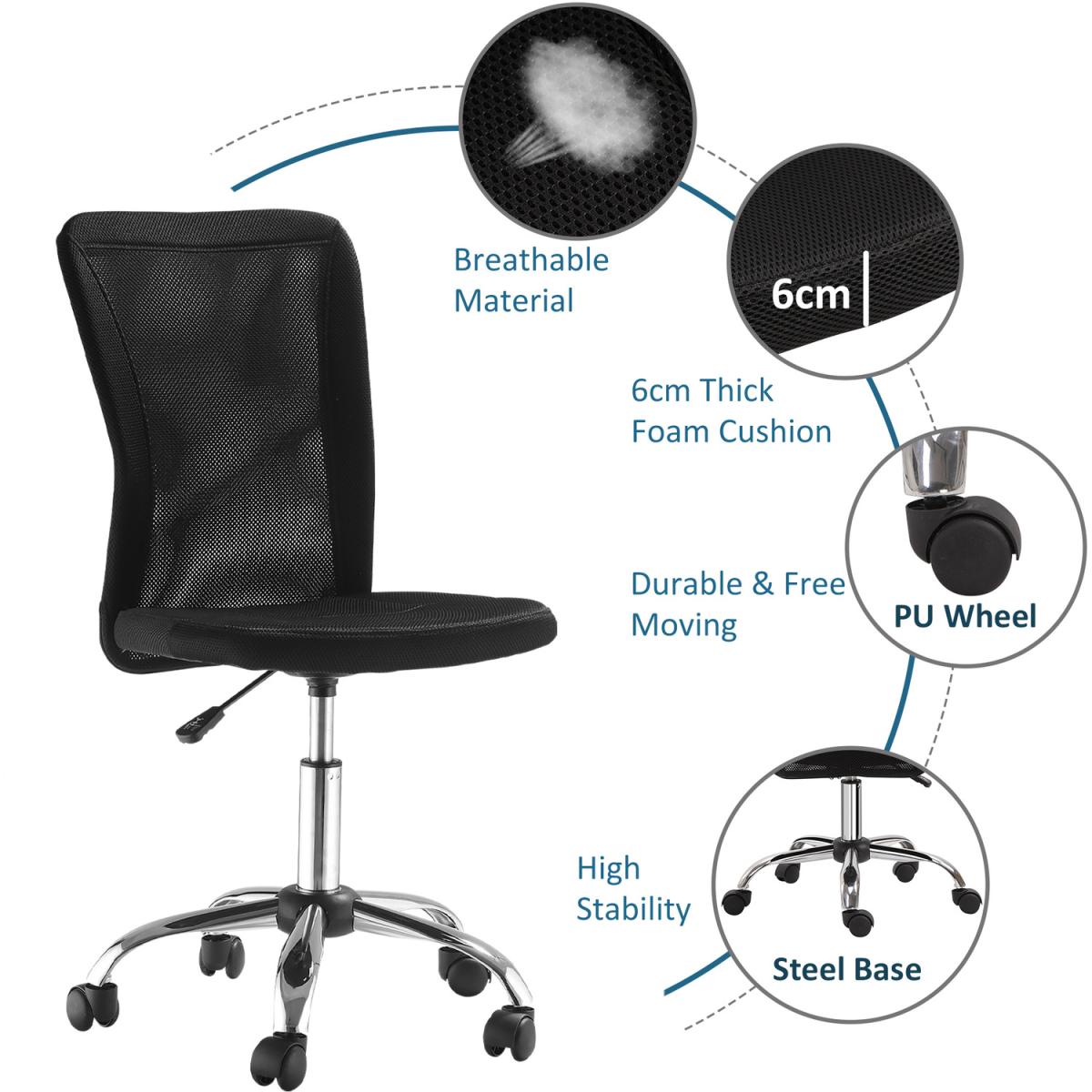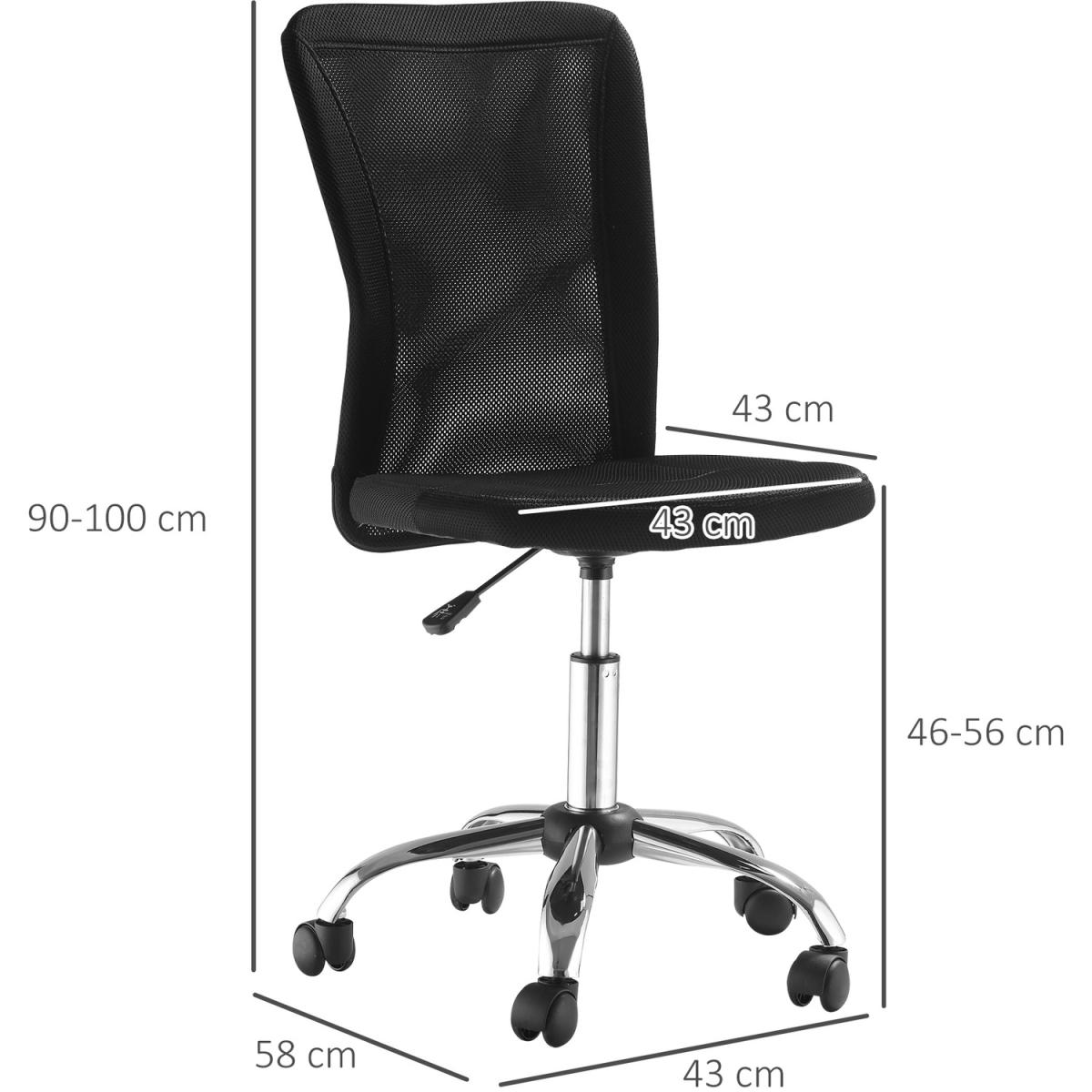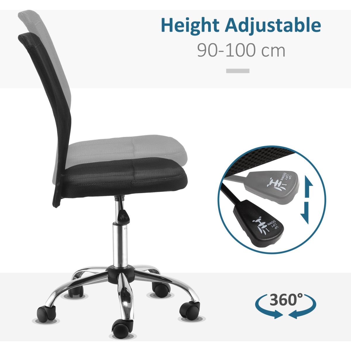 Keep comfortable whilst working all day with this chair from Vinsetto. Ergonomic in design, it is fitted with thick foam to cushion and comfort your body whilst seated, with mesh on the back for your body to breathe. Slightly curved on the back for support as you lean back, the solid base is fitted with five wheels so you can move around easily and smoothly. With no arms, it will fit underneath your chair at any height, and its compact design is ideal for places with little room to spare.