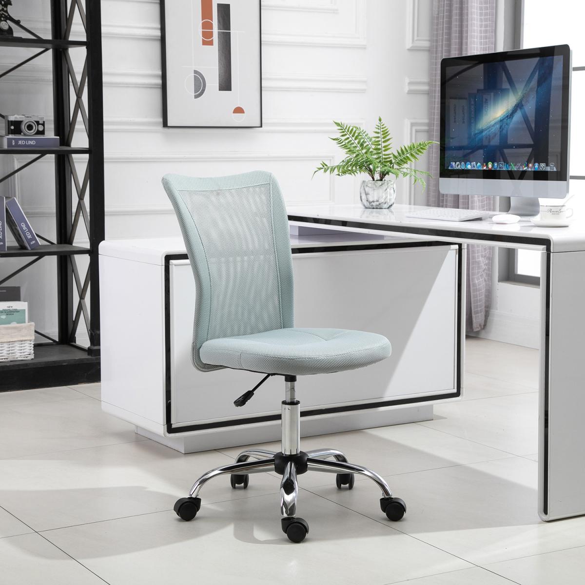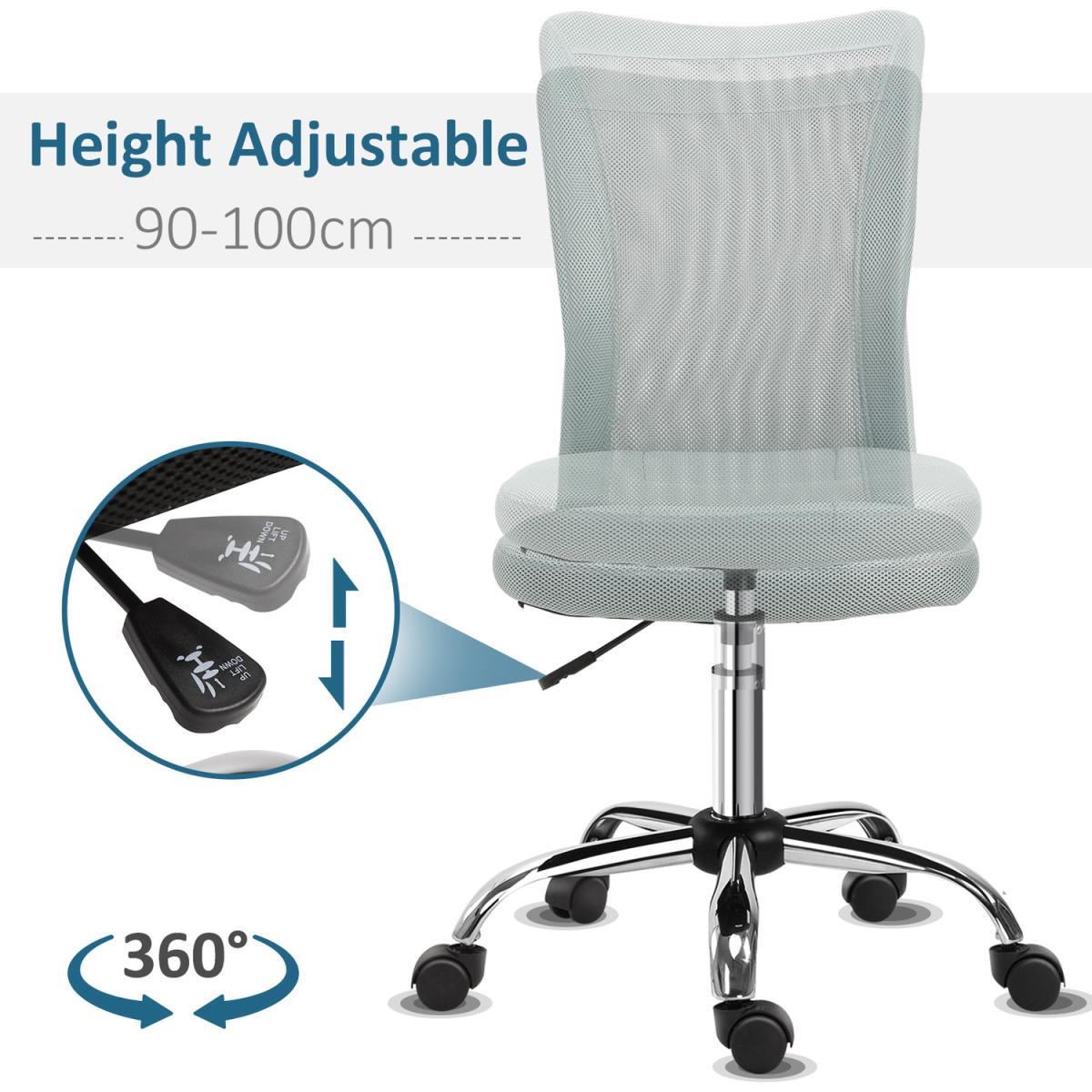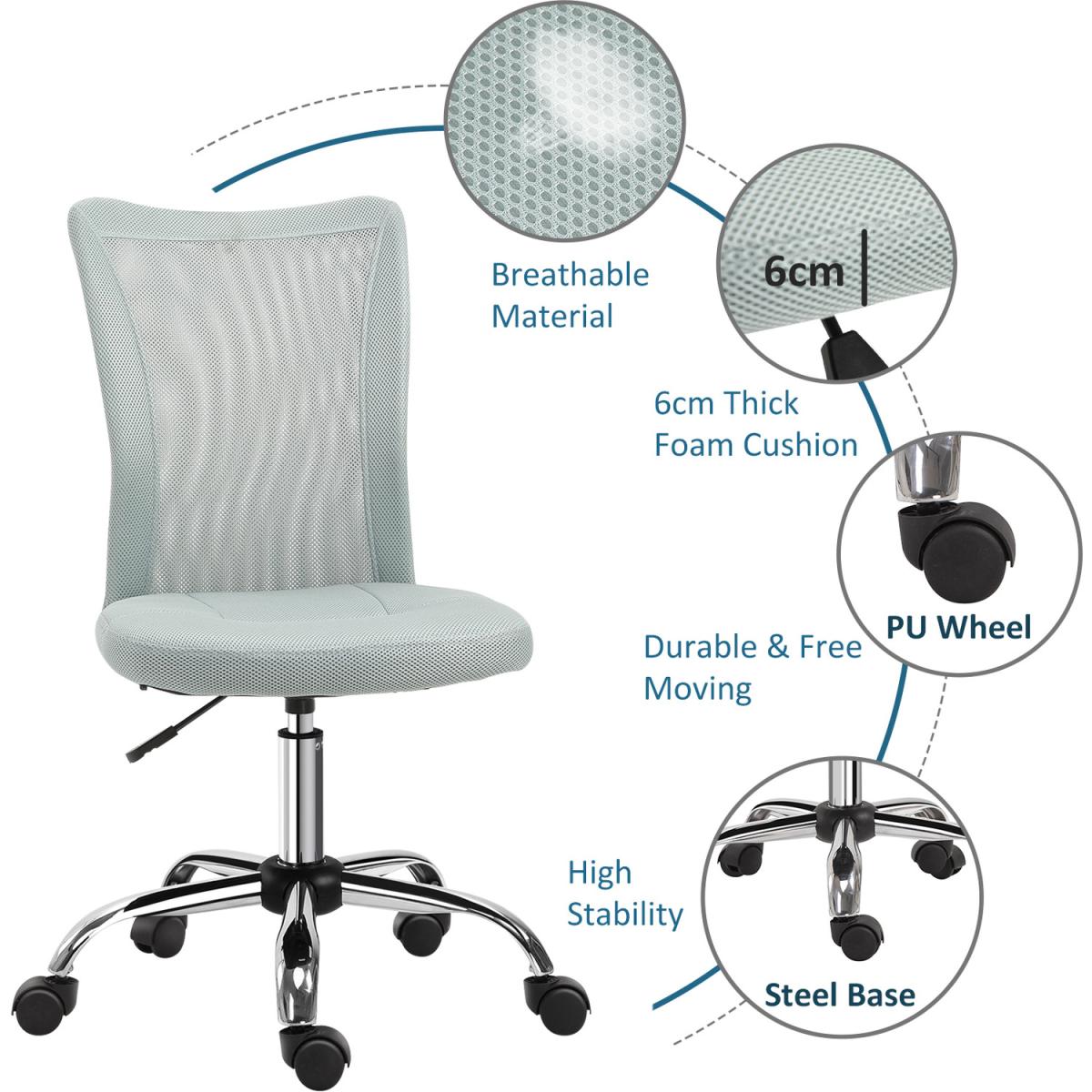 Keep comfortable whilst working all day with this chair from Vinsetto. Ergonomic in design, it is fitted with thick foam to cushion and comfort your body whilst seated, with mesh on the back for your body to breathe. Slightly curved on the back for support as you lean back, the solid base is fitted with five wheels so you can move around easily and smoothly. With no arms, it will fit underneath your chair at any height, and its compact design is ideal for places with little room to spare.