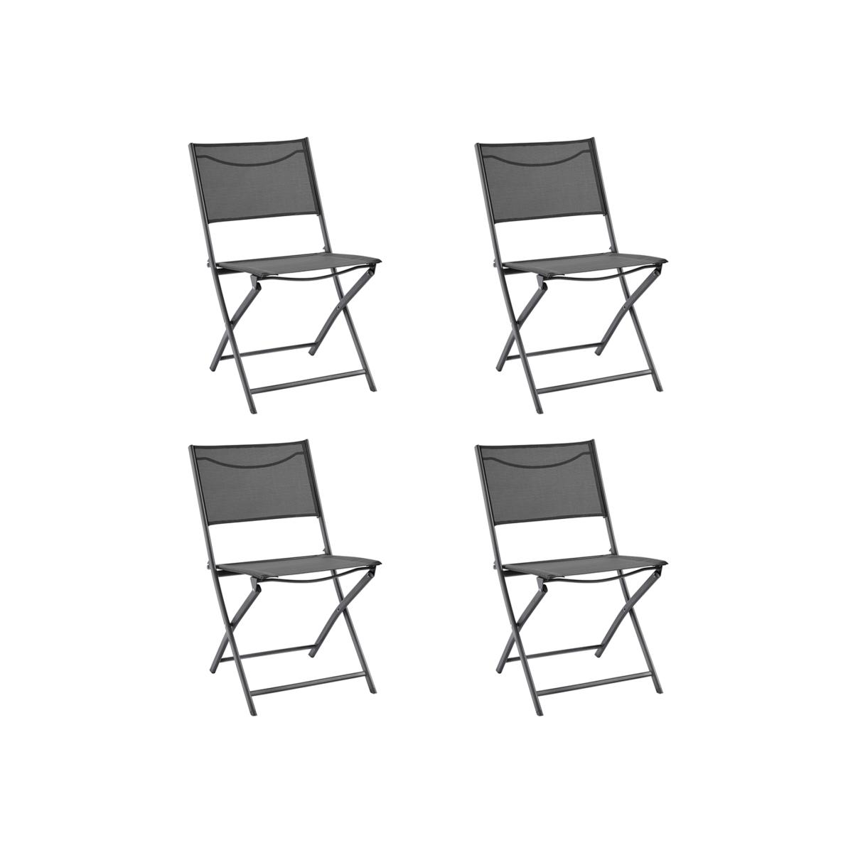 Crafted from durable 550g Texteline fabric and powder-coated iron, this 4 piece dining chair set combines comfort with practicality. The folding design allows for easy storage, while the ergonomic shape ensures lasting comfort during meals. With a 220 lb weight capacity, it' s made to endure. No assembly required simply unfold and enjoy. Set of 4 Outdoor Folding Dining Chairs Armless Patio Chairs - Grey