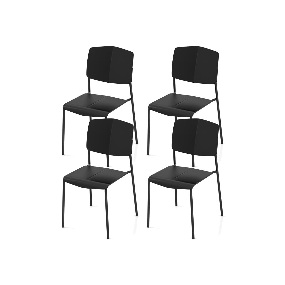 I’m a fan of these black side chairs for their clean lines and lightweight metal frame - they slot straight into contemporary or minimalist schemes without overpowering the room. They work equally well around a pared-back dining table, in a home office as extra seating or even in a hallway to catch keys and bags. For styling, team them with a warm timber-top table to soften the monochrome look, or place them around a clear glass surface to keep the space feeling open. If you need extra comfort or a pop of colour, add slim seat pads or simple linen cushions. Because they’re armless and stackable, they’re also perfect for small spaces or occasional use.
