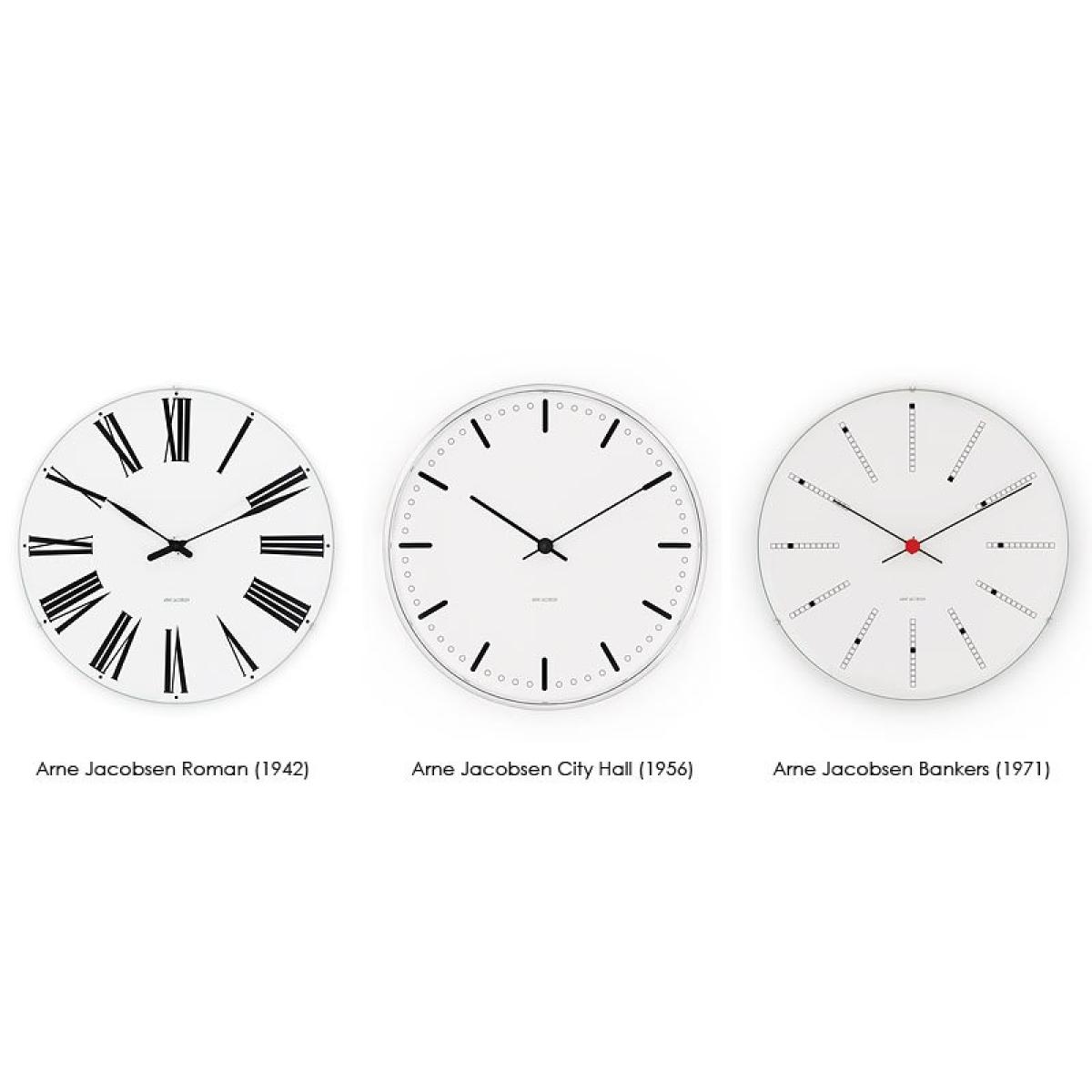 The City Hall wall clock – designed by Arne Jacobsen in 1956 for Rødovre City Hall - is typical of its era, stringent and unsentimental design, almost institutional. Silent and beautiful in any home! It was Arne Jacobsen’s custom to design the totality – everything from the building to its fixtures and fittings, furniture etcetera – including this wall clock! Choose between different sizes.