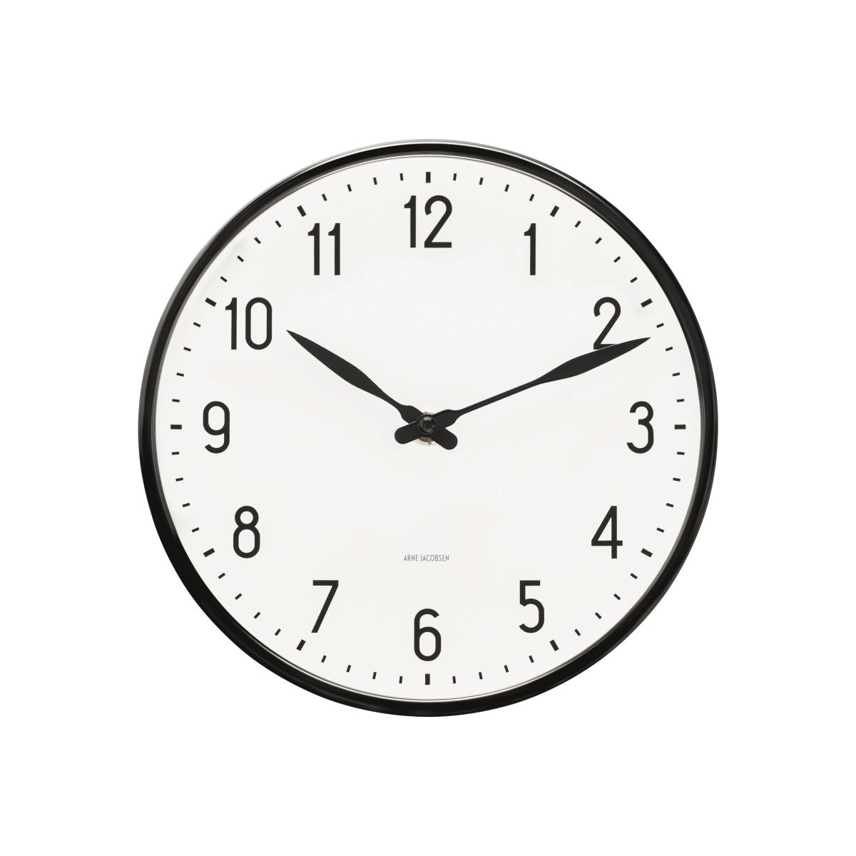 The stylish Arne Jacobsen Station wall clock from Rosendahl is a cult classic that transforms an anonymous white wall into a clear "design statement" in a jiffy. The Station wall clock was designed by Danish Arne Jacobsen in 1941 and 2013 Rosendahl re-created the original product with an edge ring in stylish black aluminium. Choose between different sizes!.