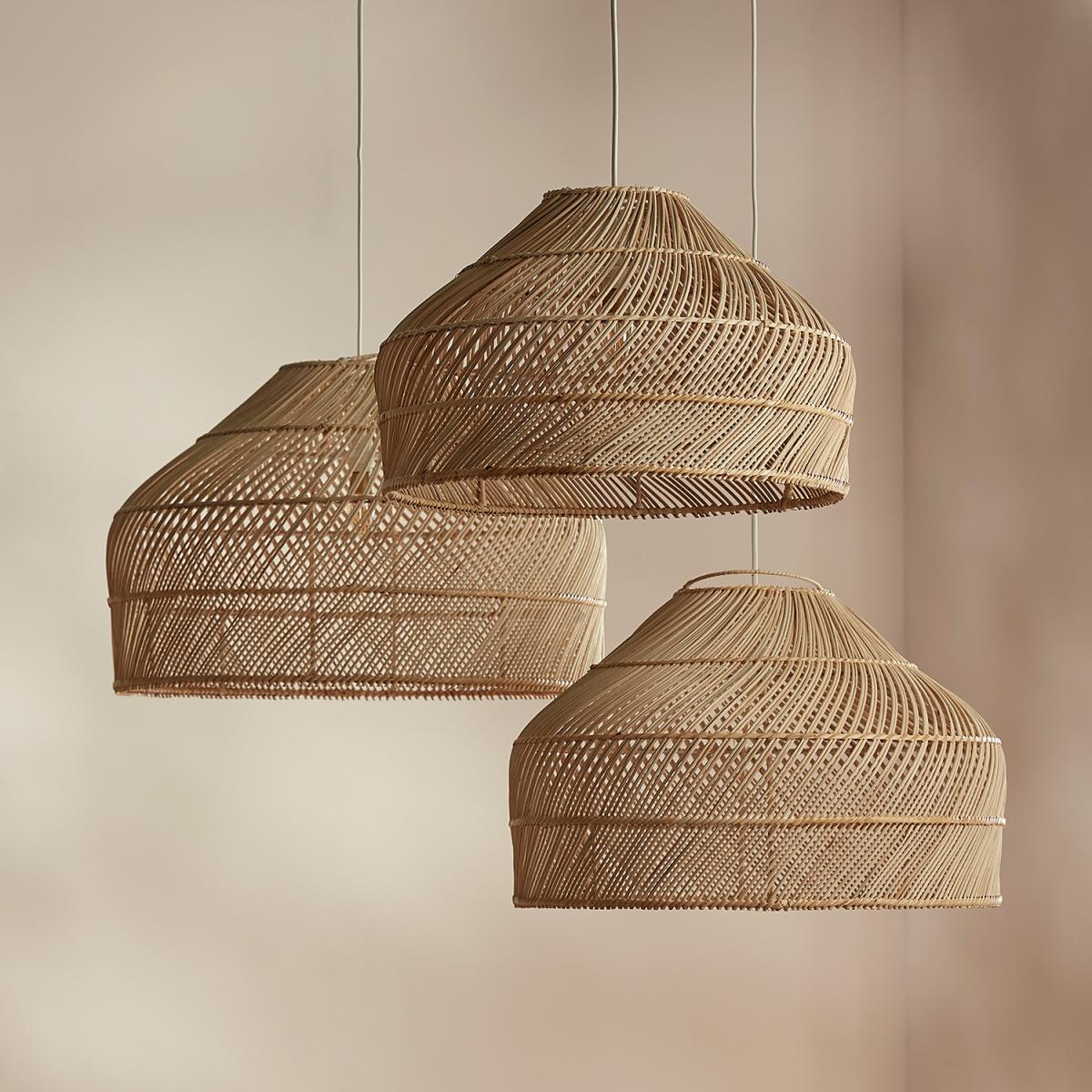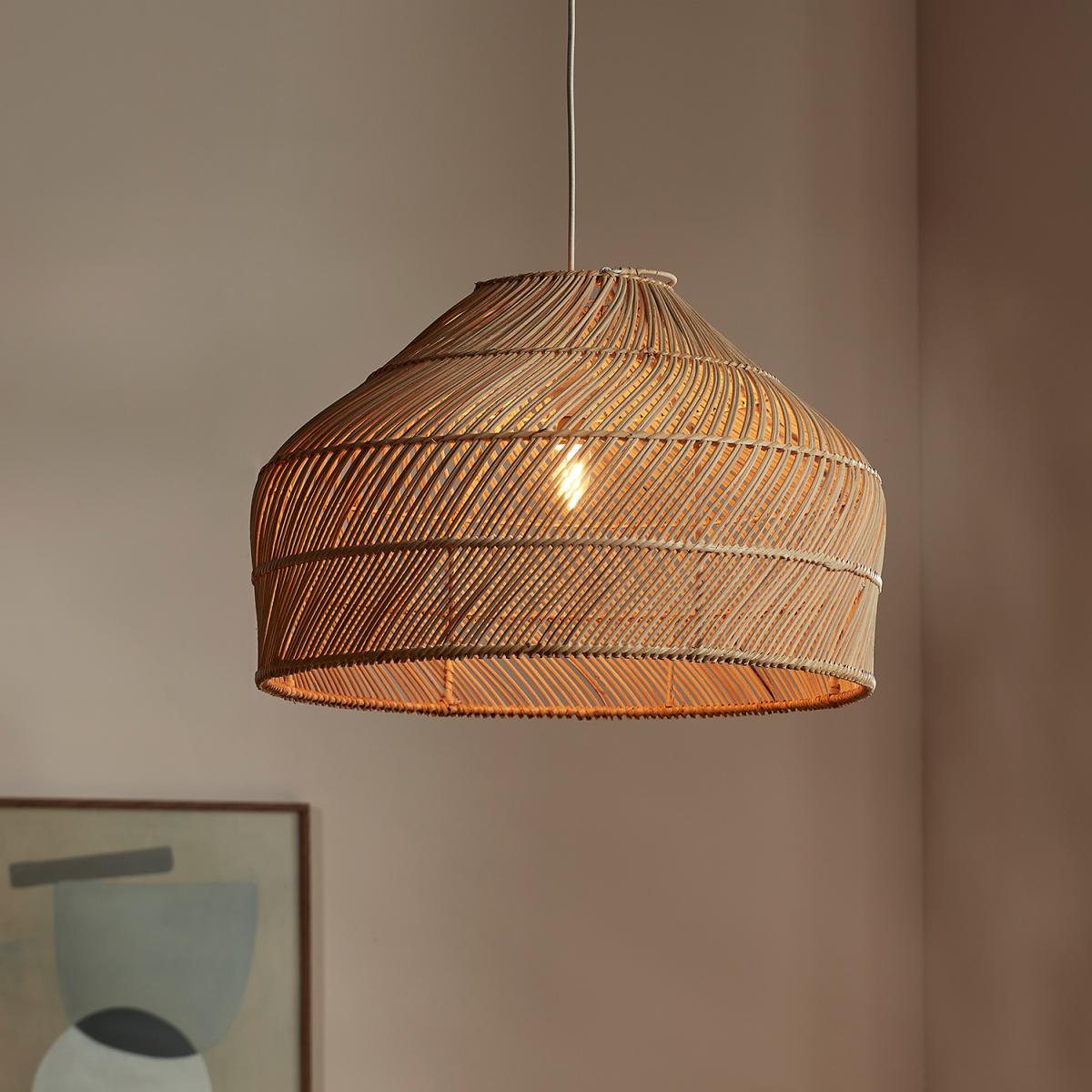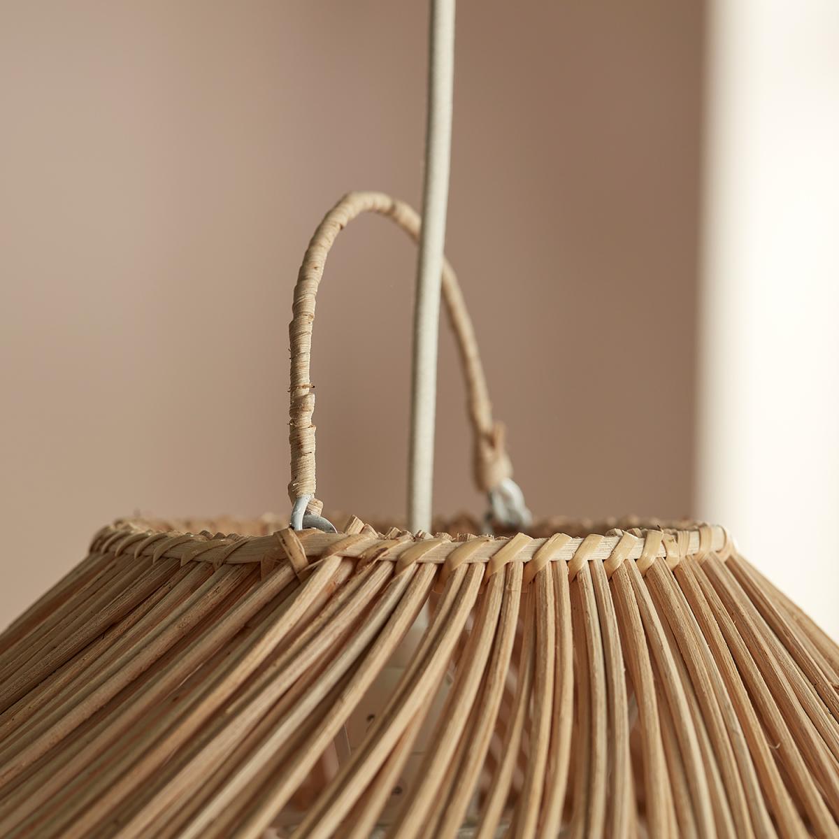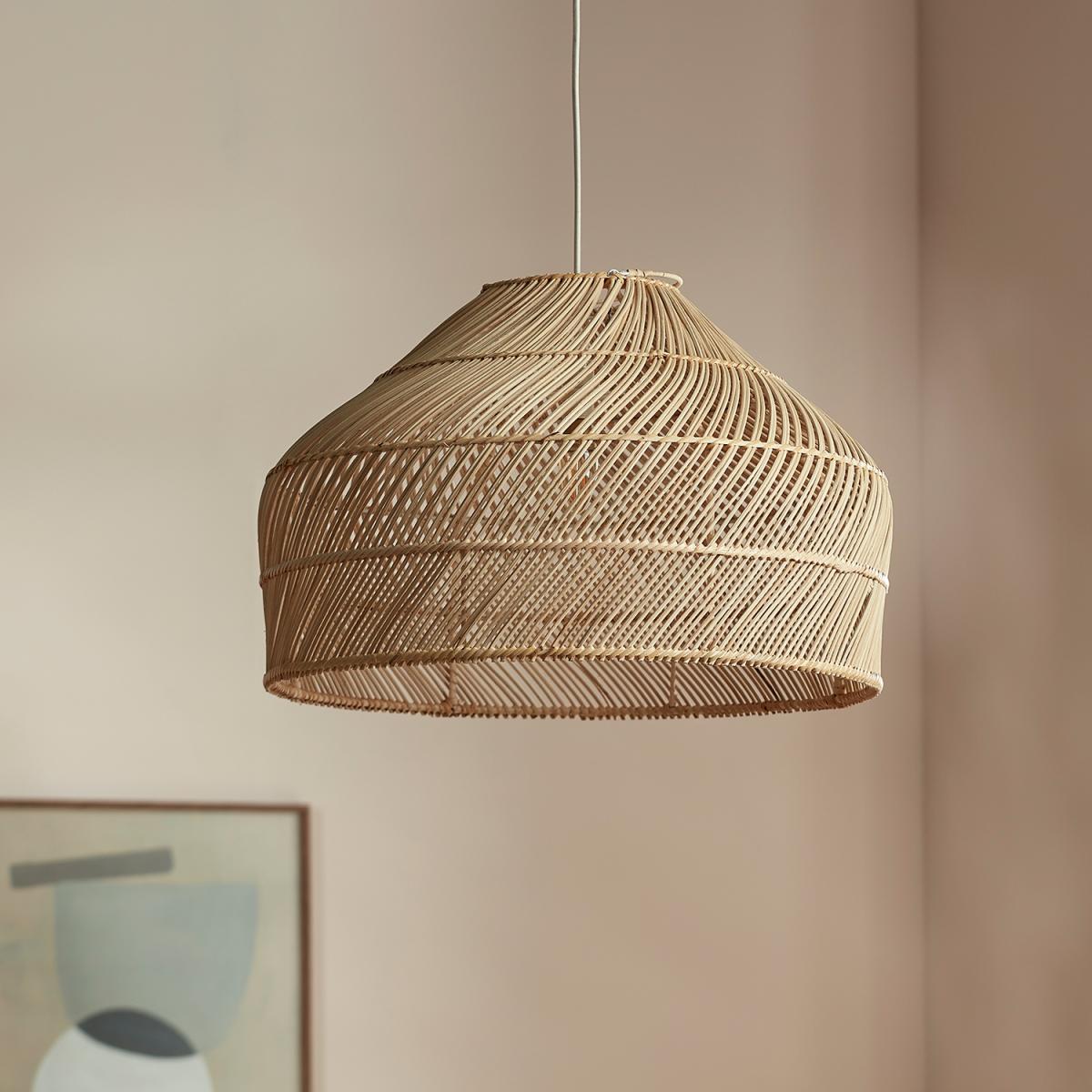 The Medium Arne Lampshade is a statement piece for your home. This natural rattan woven lampshade has a stylish shape that helps to soften the lighting in larger rooms. Also available in large and small - buy all three together to create a beautiful cluster of pendant lights. This basket lampshade doesn't just look fantastic it also has a warming story backed by ethical standards. These are handmade in Indonesia by women who are in turn supported by a sustainable entrepreneur program. This allows the makers to live and work within their communities saving any need to move to the city away from their families. The materials used are all eco-sourced vegan friendly and renewable as such each one is unique in its construction. Electricals not included.