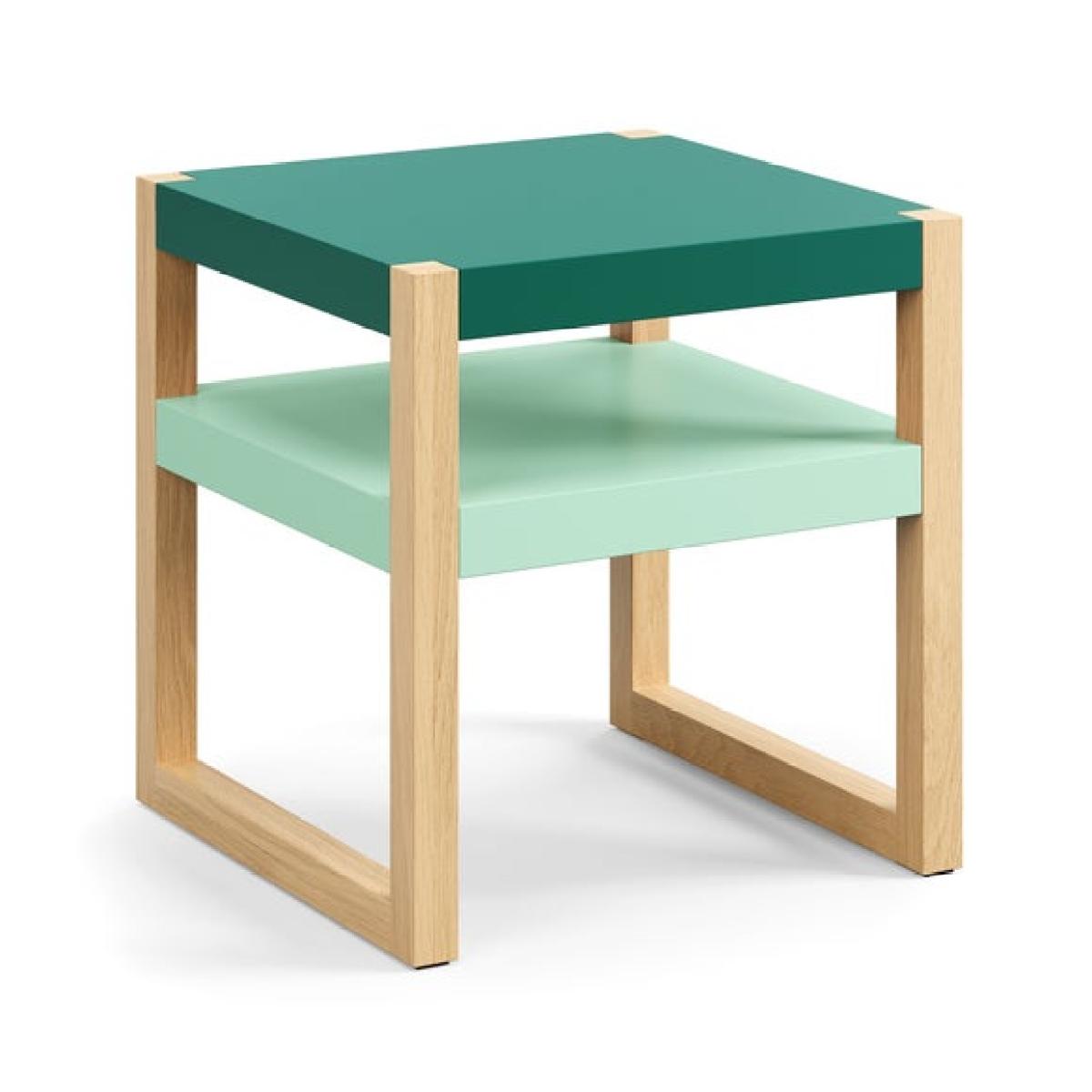 * Modern bedside table * Two-tone finish * Open shelf The Arnie bedside table is a bold and playful addition to any bedroom, designed to bring a sense of fun and individuality to your space. With its dual-colour finish, it introduces a unique pop of personality while maintaining a clean, modern silhouette. The open storage compartment offers a practical space for keeping nighttime essentials within easy reach, perfect for books, glasses, or decorative items.