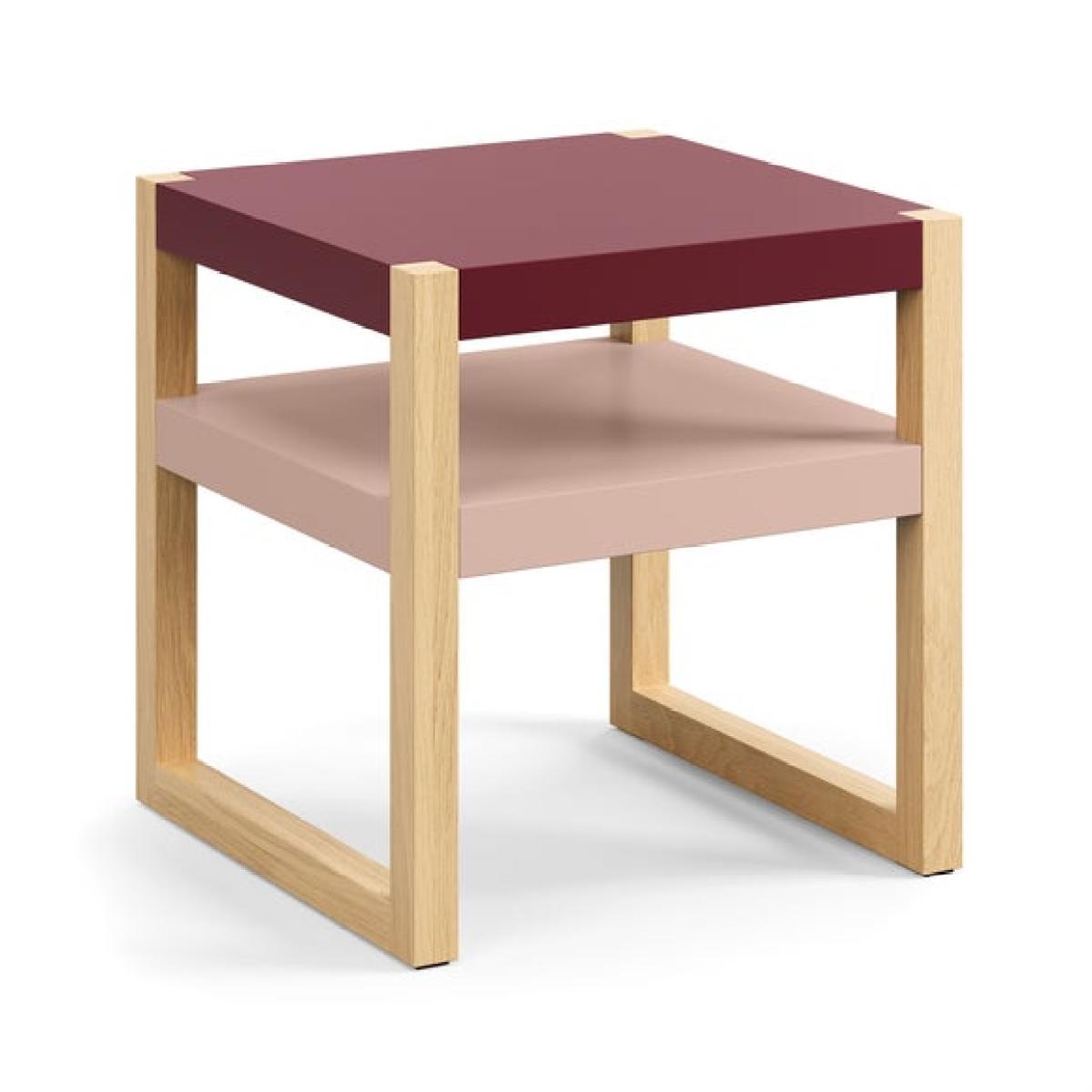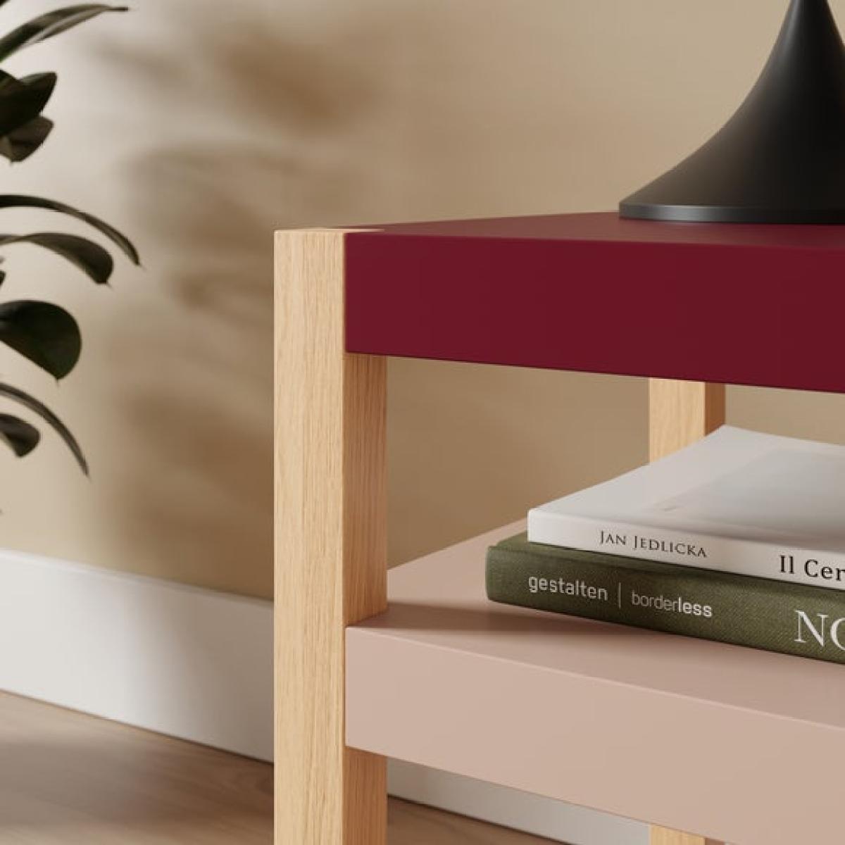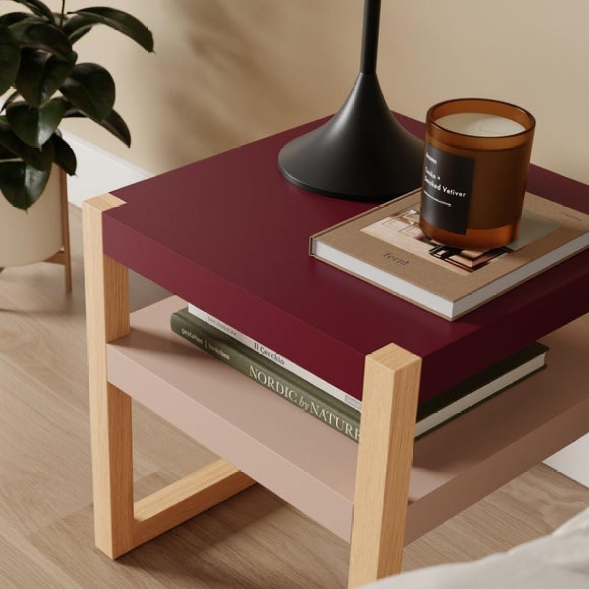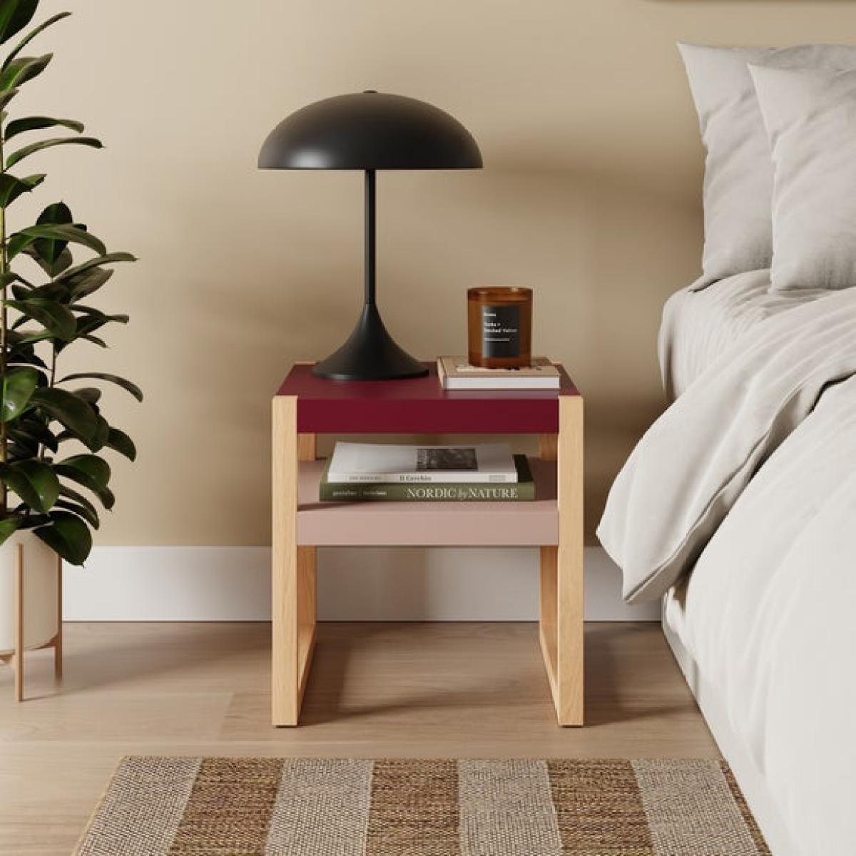 * Modern bedside table * Two-tone finish * Open shelf The Arnie bedside table is a bold and playful addition to any bedroom, designed to bring a sense of fun and individuality to your space. With its dual-colour finish, it introduces a unique pop of personality while maintaining a clean, modern silhouette. The open storage compartment offers a practical space for keeping nighttime essentials within easy reach, perfect for books, glasses, or decorative items.
