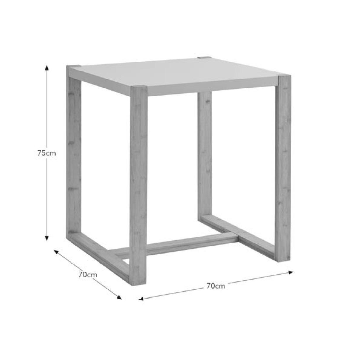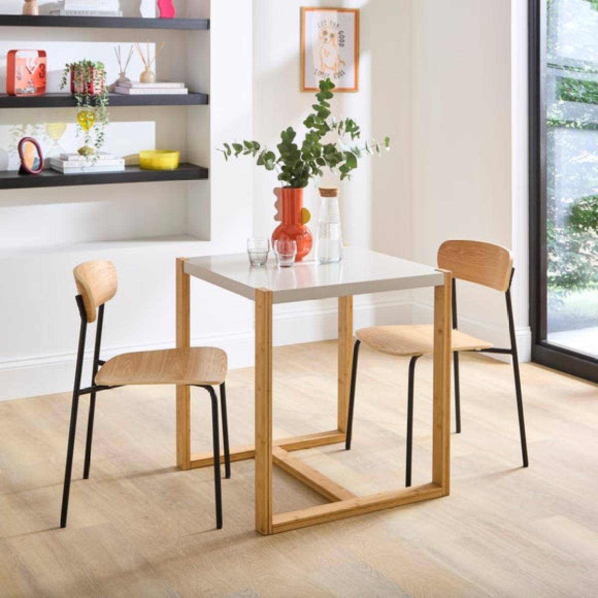* Wooden dining table * Colour block design * Suitable for compact living * Seats up to 2 people Perfectly proportioned for smaller spaces, the Arnie square dining table is a smart choice for compact kitchens, studio flats, or breakfast nooks. With a 70cm square top, it offers just the right amount of space for two to dine comfortably without overwhelming the room. Its simple, modern design makes it easy to pair with a variety of chairs and interior styles, while the sturdy construction ensures everyday durability.