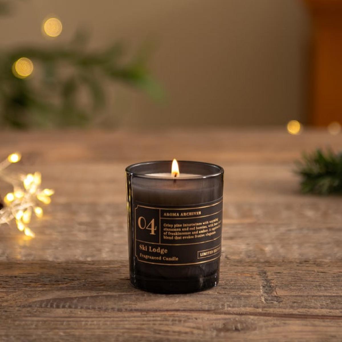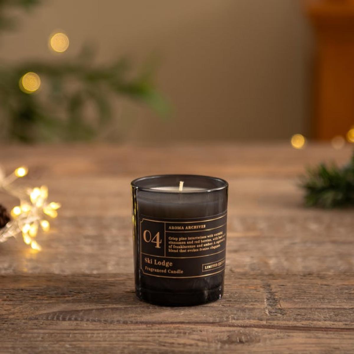 * Votive sized candle * Deep blue glass vessel * Fresh ski lodge scent * Up to 20 hours burn time Add a touch of alpine charm to your festive décor with the Aroma Archives Ski Lodge Votive Candle. Crisp pine notes blend with warming cinnamon and red berries, settling into a luxurious base of frankincense and amber. This rich, layered fragrance evokes the elegance of winter holidays in the mountains. Housed in a deep blue glass vessel, it’s a stylish accent for cosy Christmas evenings. With up to 20 hours of burn time, it’s perfect for gifting or enjoying in your own home. A seasonal favourite for lovers of fresh yet comforting scents.