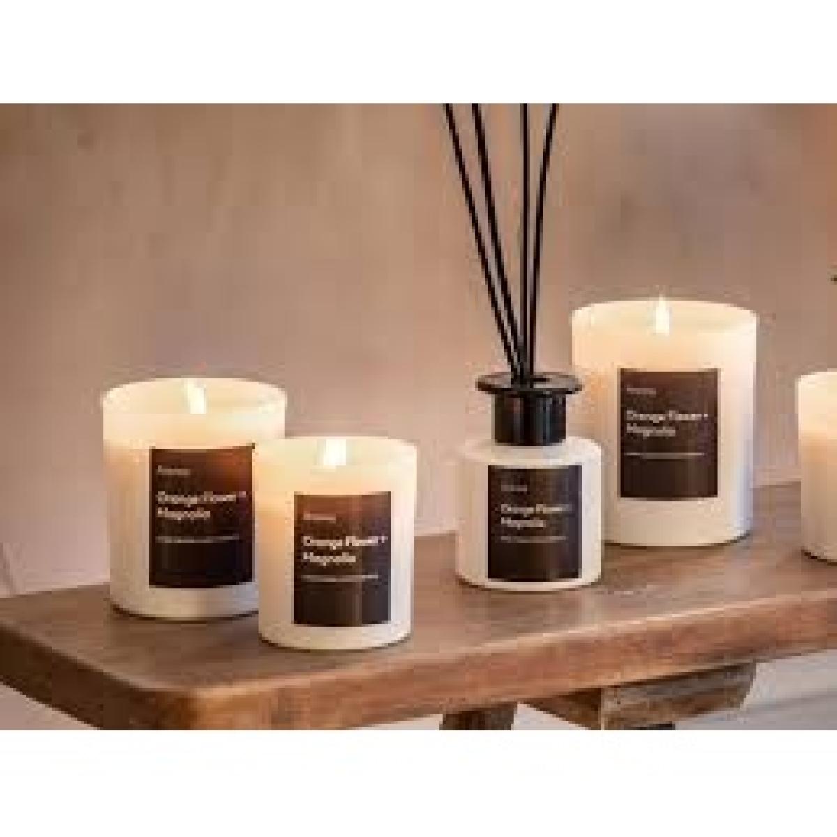 I love this scent as it offers a fresh yet slightly floral aroma that works well in a variety of interiors. The orange flower and magnolia notes lend a bright, welcoming feel, perfect for living rooms or entry areas. It’s versatile enough to complement both modern minimalist schemes and more traditional settings, adding a touch of elegance without overpowering the space. For practical styling, I recommend placing it on a side table or a shelf in a clear glass or ceramic tray to catch any drips, and pairing it with neutral accessories like candles or botanical elements to enhance its natural vibe. It’s an easy way to introduce subtle luxury and a constant comforting scent to everyday spaces.