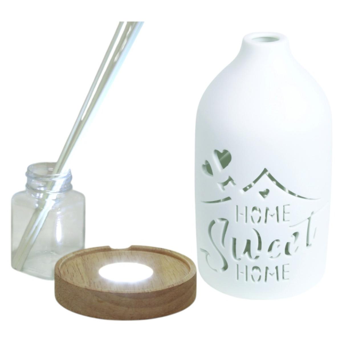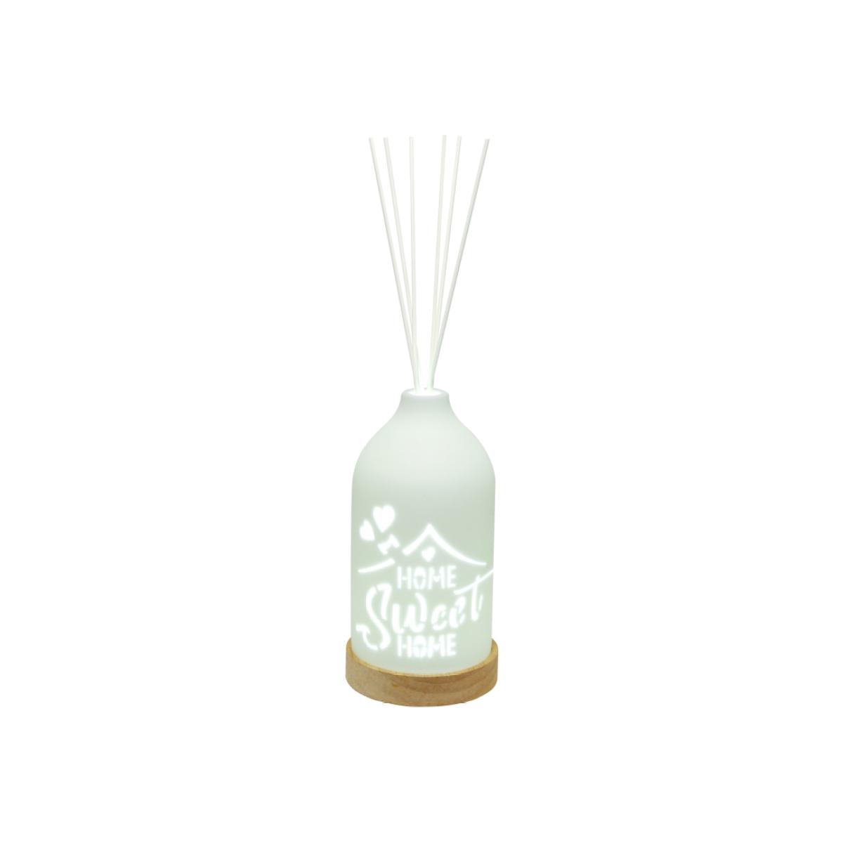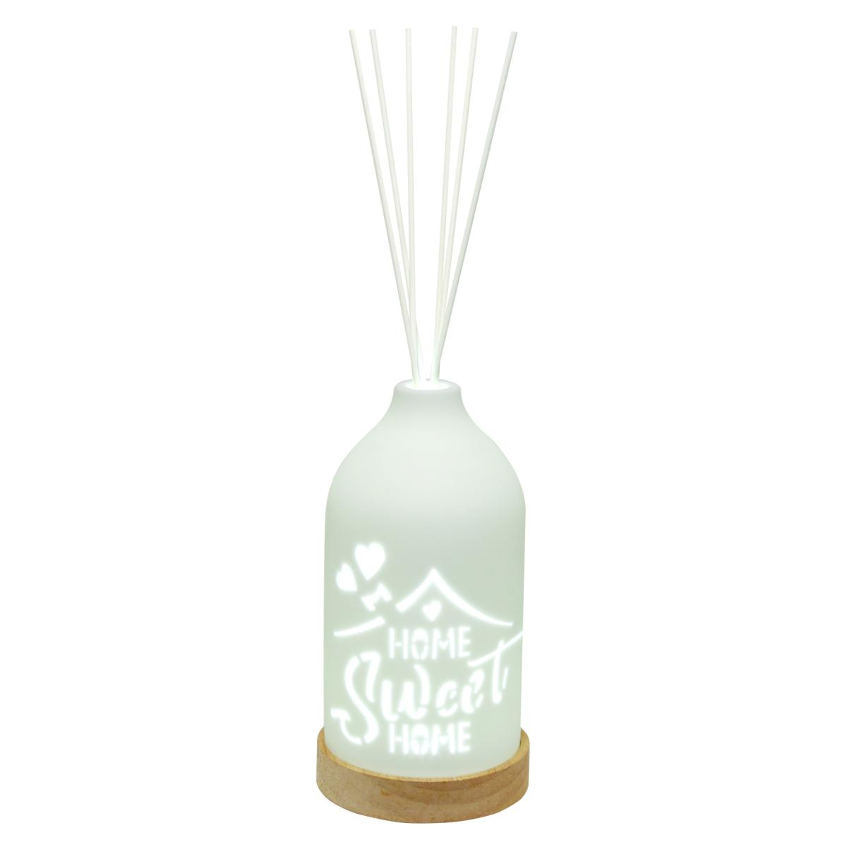 Add a touch of elegance and gentle fragrance to your home with this stunning LED Ceramic Reed Diffuser with a Home Sweet Home Design. Standing 19cm tall, this beautifully designed diffuser blends soft illumination with a fresh, clean scent to create a calming and stylish atmosphere. The white ceramic cover features an intricate Home Sweet Home design that glows beautifully when the LED light is switched on, showcasing the delicate pattern and adding warmth to any room. The included 100ml Clean Linen fragrance sits on the LED base and is absorbed by the white reed sticks, releasing a long-lasting, refreshing aroma reminiscent of freshly washed linens. With an on/off switch located on the lead, this diffuser is both practical and elegant—perfect for bedrooms, living areas, or as a thoughtful gift for someone special. Features: Height: 19cm Includes 100ml Clean Linen fragrance (lasts up to 3 months) Includes white reed sticks Elegant Home Sweet Home ceramic design with soft LED illumination On/off switch located on the lead Ideal for gifting or adding a relaxing glow to any room