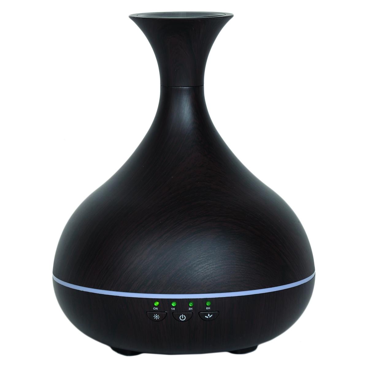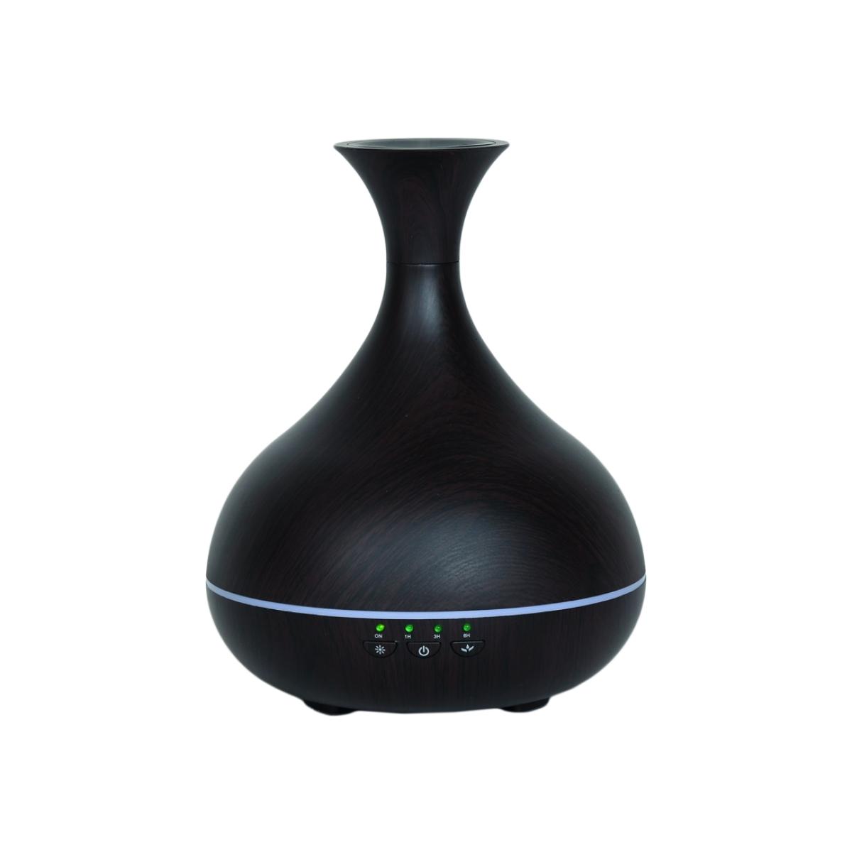 Bring calm, style, and fragrance into your home with our LED Ultrasonic Diffuser in Dark Wood. Designed with a sleek vase shape and contemporary wood-effect finish, this diffuser combines elegant aesthetics with advanced ultrasonic technology for a soothing aromatic experience. Using gentle electronic frequencies, the diffuser vibrates a small ceramic disc beneath the water’s surface, breaking essential oils into ultra-fine particles. The result is a cool, fragrant mist that fills your space with a long-lasting, even scent—without the need for heat or chemicals. With soft white LED lighting, multiple timer settings, and automatic shut-off when the reservoir runs dry, you can enjoy peace of mind and effortless relaxation at any time of day. Features: Stylish dark wood vase design (22cm tall) White LED light for ambient glow Multiple timer options for customised diffusion Automatic switch-off for safety and convenience Ultrasonic technology for quiet, efficient operation Compatible with pure essential oils for optimal results Enhance your atmosphere naturally—pure fragrance, modern design, total tranquillity.