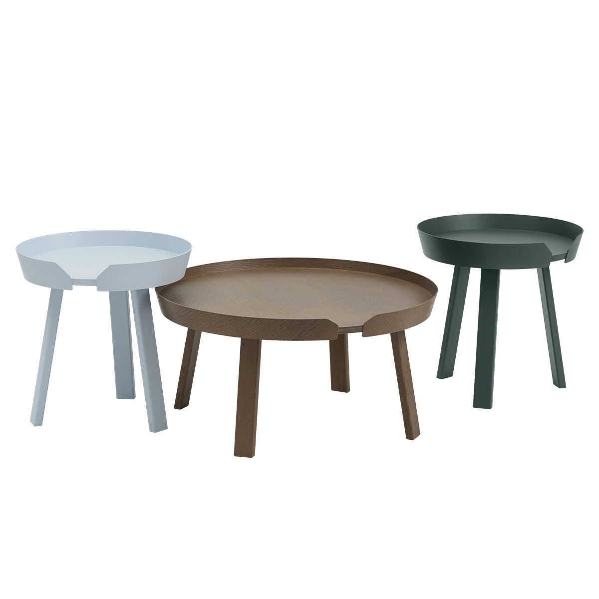 Just look at these beautiful wooden coffee tables and you’ll recognise Muuto’s “Nordic touch”: elegant, simple and restrained. This round coffee table is made of stained ash. Very practical, this top with its high rim helps avoid accidents: there’s no risk of dropping your glass or cup! You can use Around tables separately (as coffee tables, end tables or bedside tables) or combine several in front of a sofa to create superb graphic compositions. Mix the different shapes and colours, and let your imagination do the rest. The two different heights let you overlap their tops to create an ultra-chic bouquet of tables.