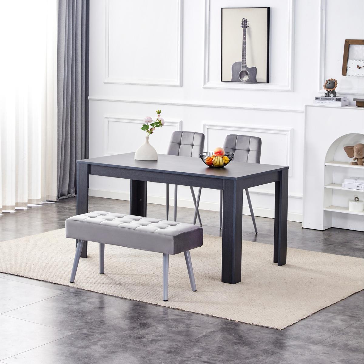 The Kosy Koala Dining Table set comes with 2 chairs and 1 Bench. The dinner table with arrow effect grey/charcoal colour design is crafted with premium MDF and a melamine laminated finish. Dining table is available in 2 colors. The grey dining chairs are made from high-quality velvet with metal chair legs. The Grey Velvet dining bench comes with a soft grey velvet padded seat with stylish stitching and tufting. Legs prevent damage with the adjustable foot protection provided. Clear instructions are included for easy assembly.