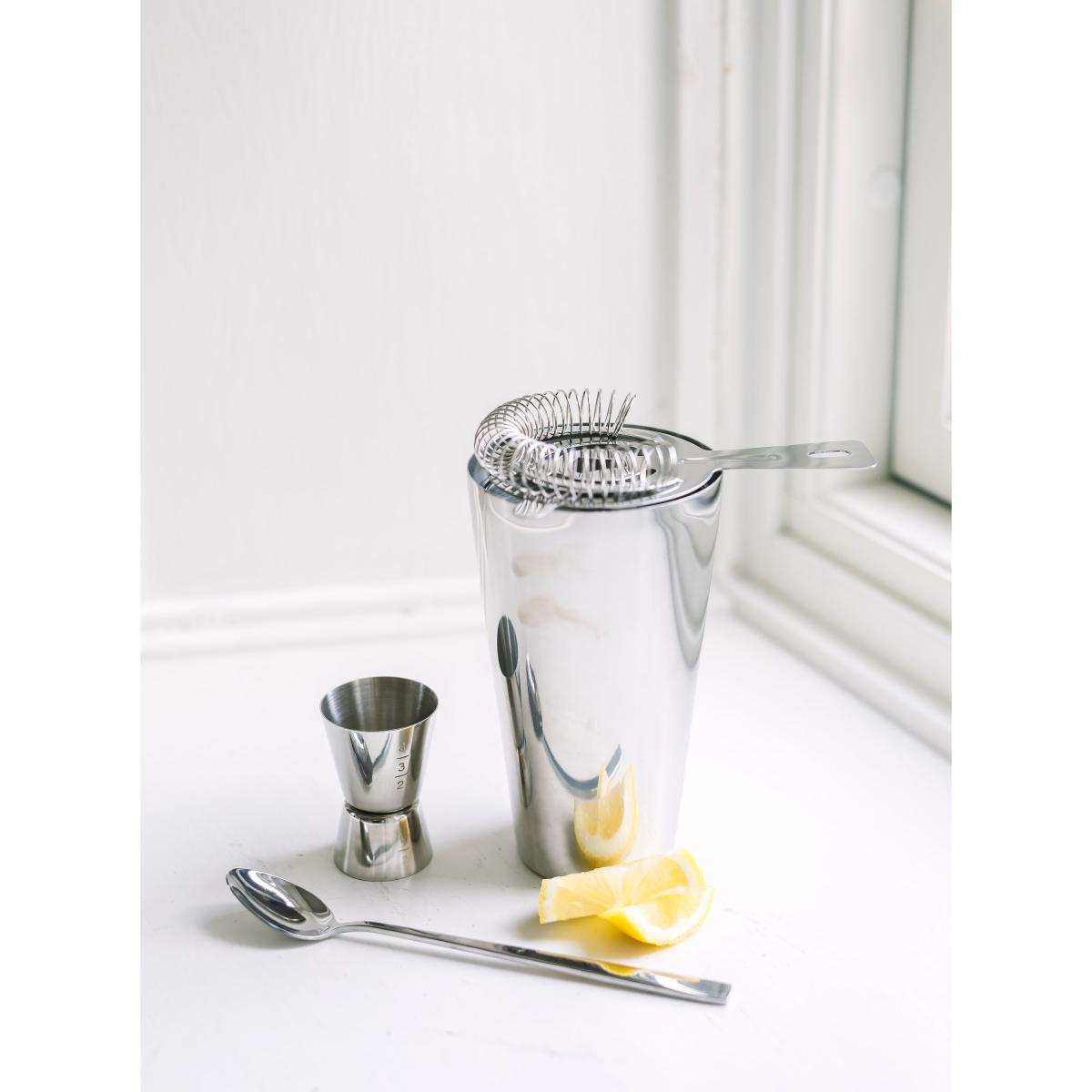 Art 3-part bar set from Swedish brand Dorre includes a cocktail shaker, a drink measure and a drink strainer, all made of high-quality stainless steel. With the drink tools, you can measure the right amount, strain out seasonings and mix delicious drinks and cocktails for your party guests. When you're not using the bar set, it makes for a nice detail piece on the drinks trolley or in the display cabinet.