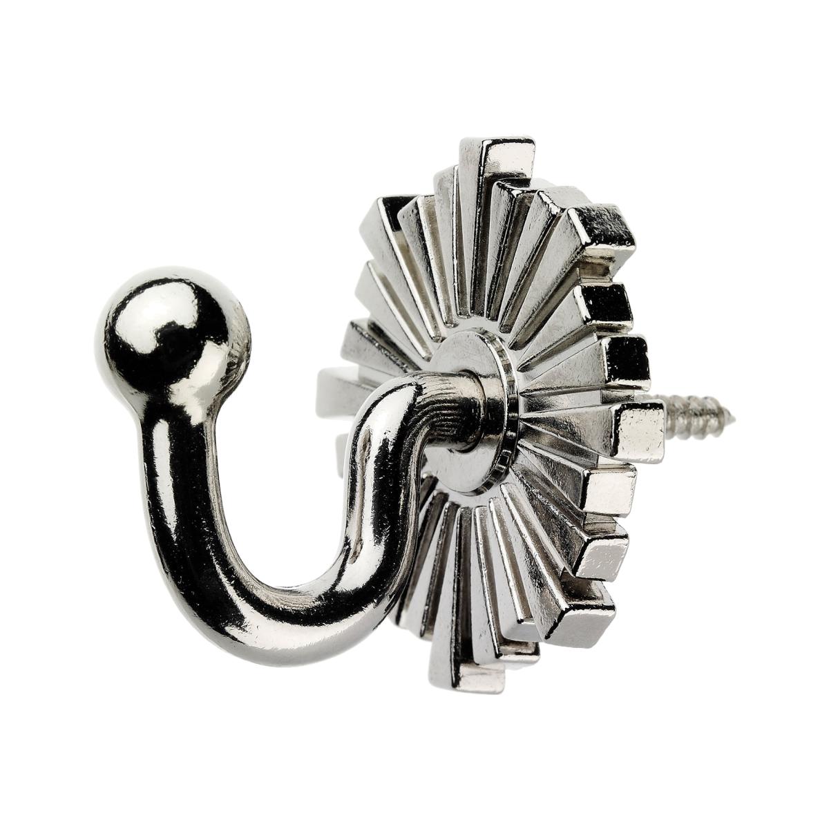 Art Deco Backplate Curtain Tieback Hooks Satin Steel (Silver)