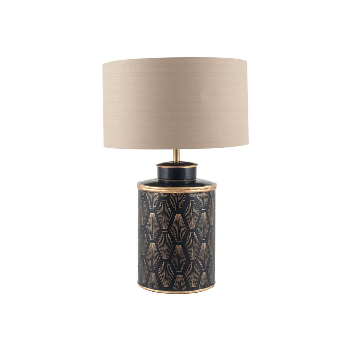 Using lacquered iron, we've crafted this beautiful base in antique black which works perfectly with the gold art deco style geometric pattern. Classic shaping with on trend styling harmonise perfectly in this piece creating a stunning lamp ideal for any space.