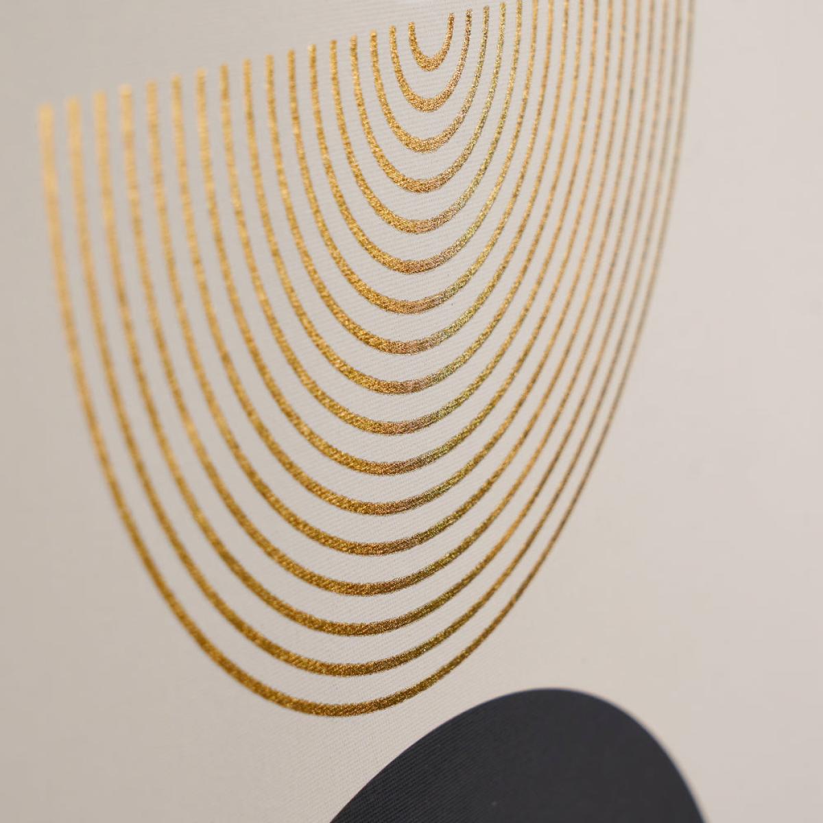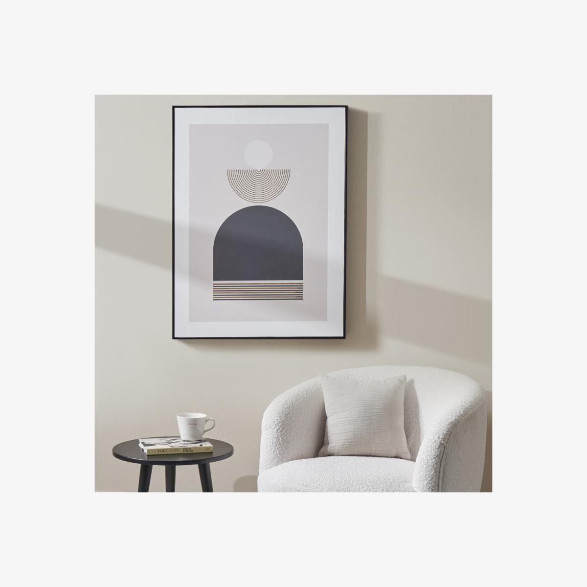 Scandi with an Art Deco twist. This striking print is softened by the neutral stone coloured background and elegant gold detailing. This piece will slot in perfectly to most home interiors, adding a statement focal point in any room.