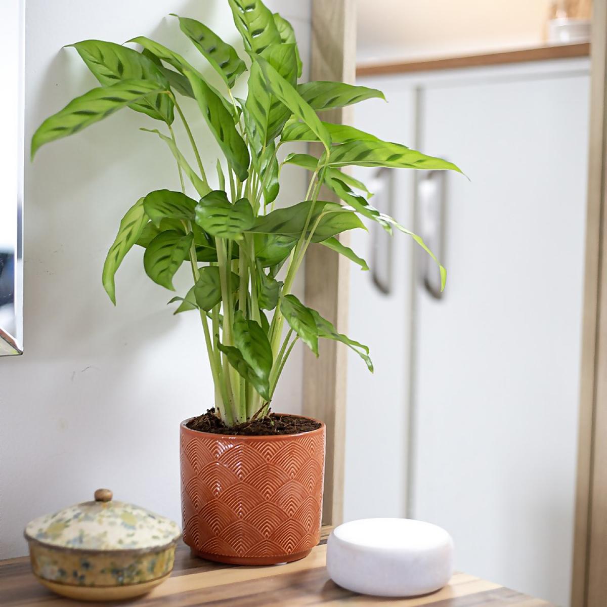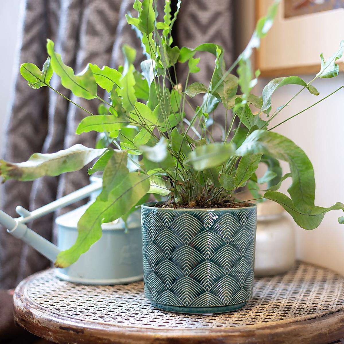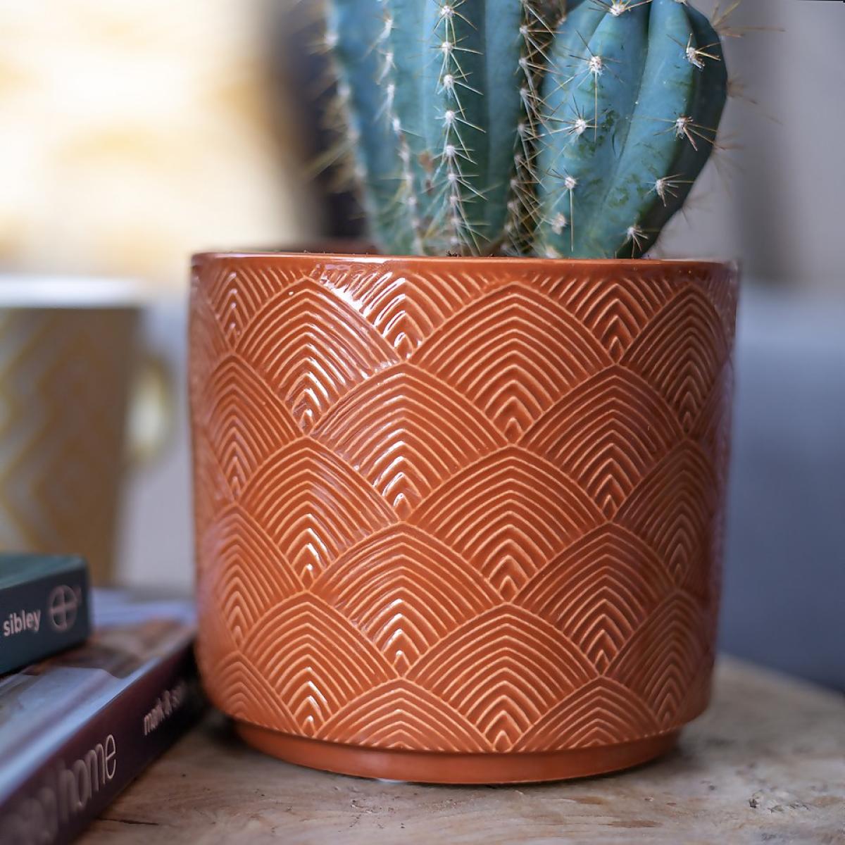 Add some colour to your home with this art deco influenced pot. The subtle ridges hold the glaze during firing to create the varying colour intensities, which enhances the design and gives a distinctive finish. A stylish addition to any home.