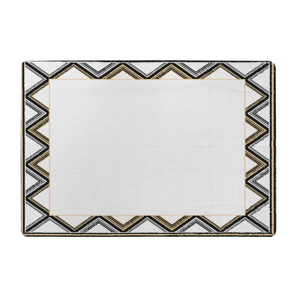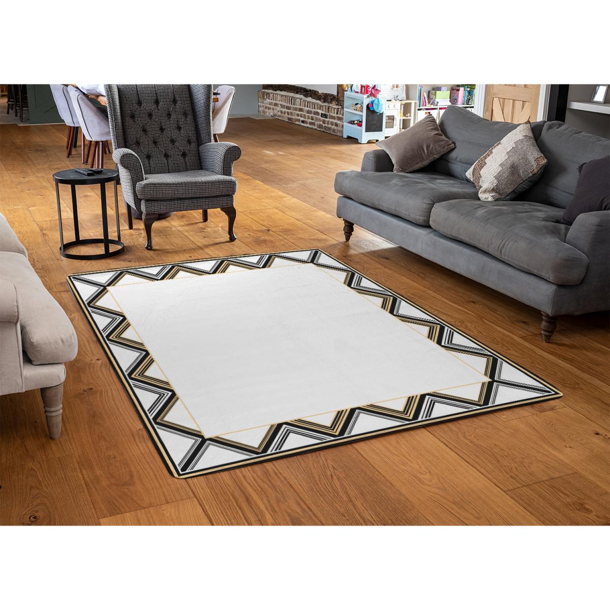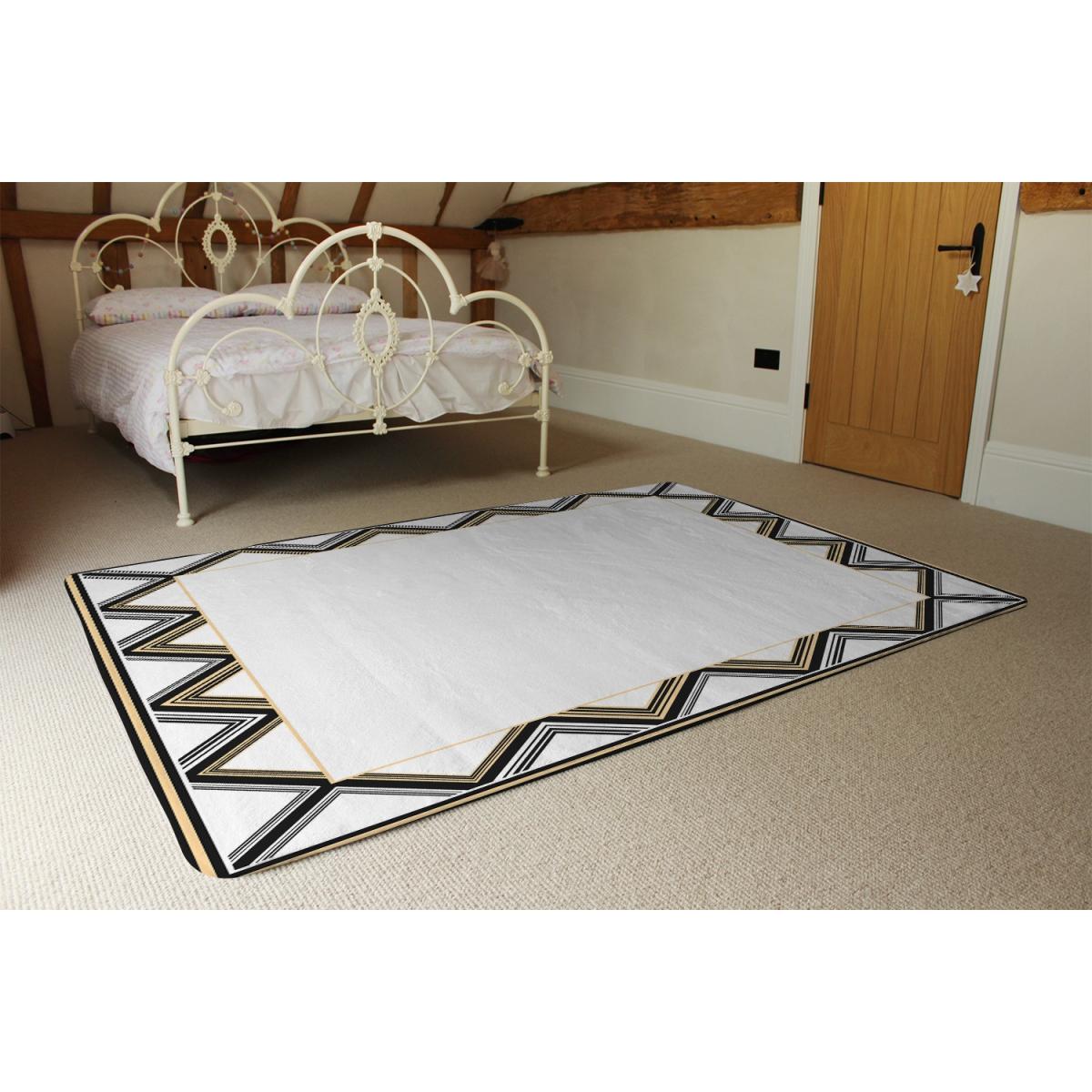 Art Deco Patterned Border Designer Rug - White / 200cm
