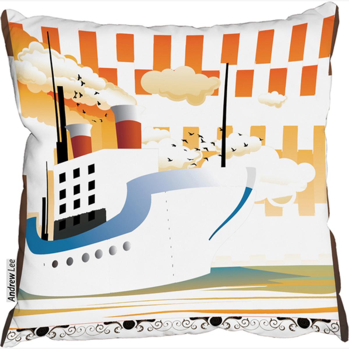 This cushion, with its Art Deco ship design in vibrant orange and clean lines, is a bold statement piece perfect for adding character to a variety of interiors. I love how it brings a touch of nautical charm while maintaining a modern geometric edge, making it versatile for both contemporary and eclectic spaces. It works particularly well in living rooms or bedrooms with neutral palettes where it can act as a standout accent, or alongside maritime-inspired decor for a cohesive look. For styling tips, pair it with textured fabrics like knits or linens to soften the bold print, and consider layering with other cushions in complementary colours or patterns to create instant visual interest.