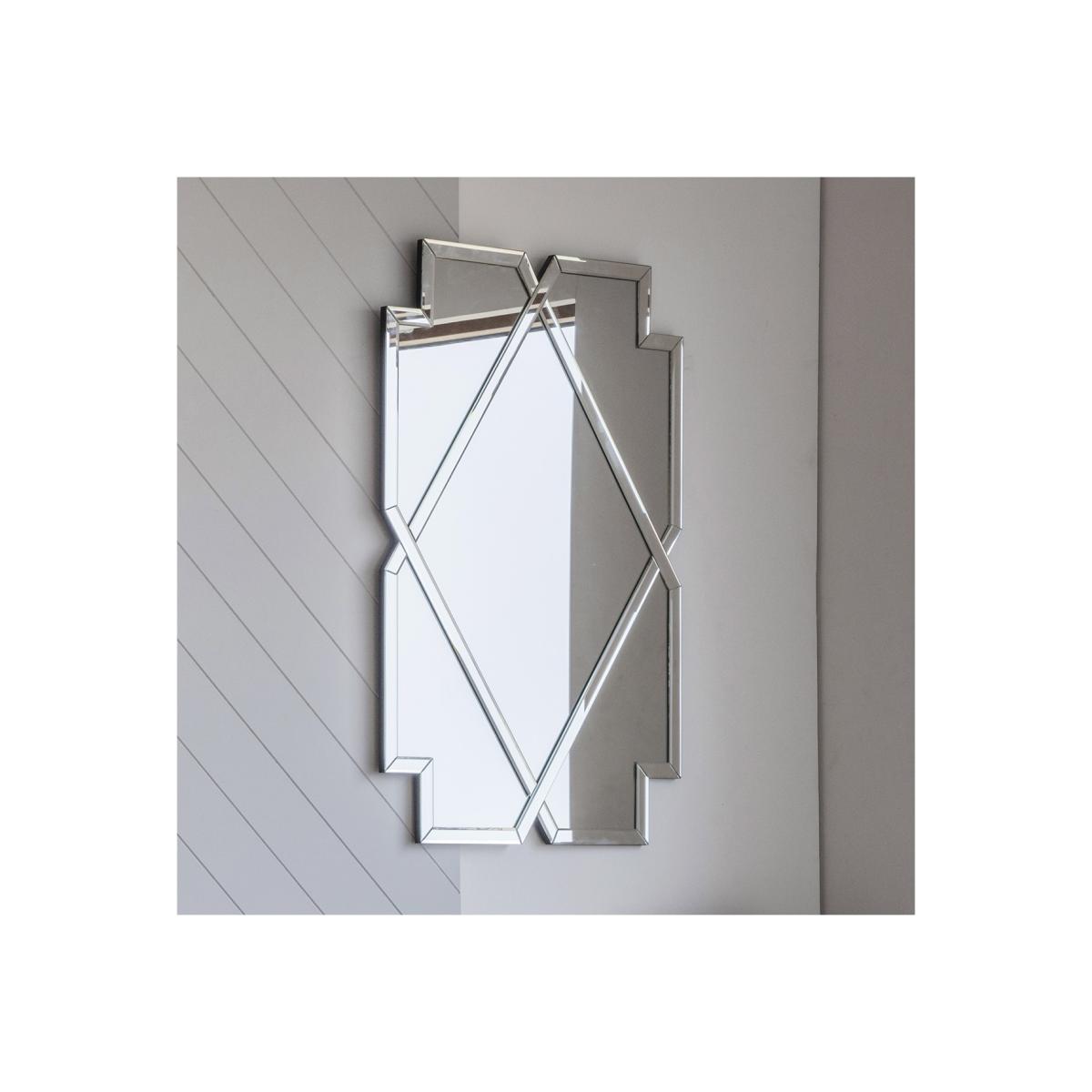 DIMENSIONS. H90 x W60 FEATURES. Modern art deco design. Wall hanging mirror. Perfect for the living room dining room bedroom or hall..