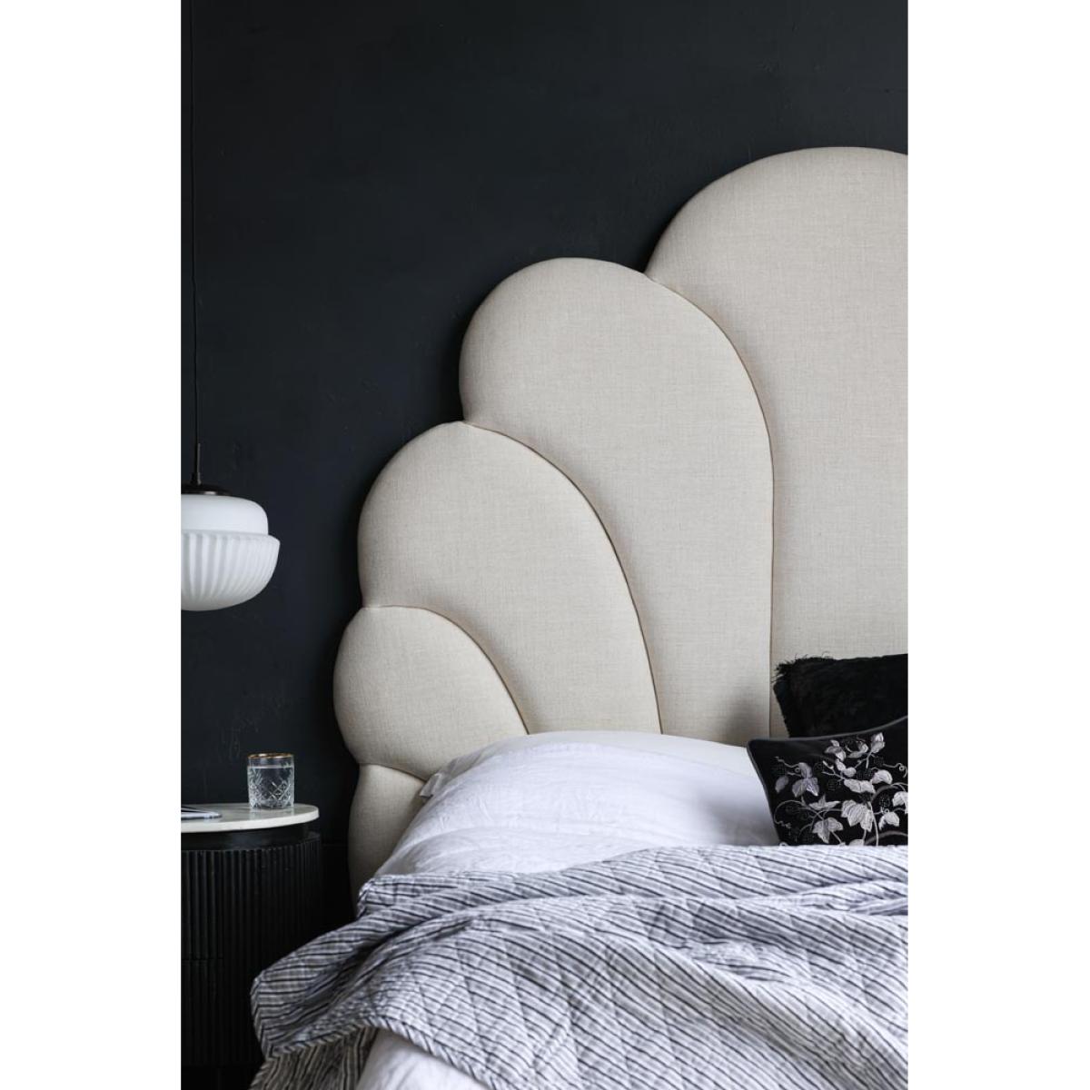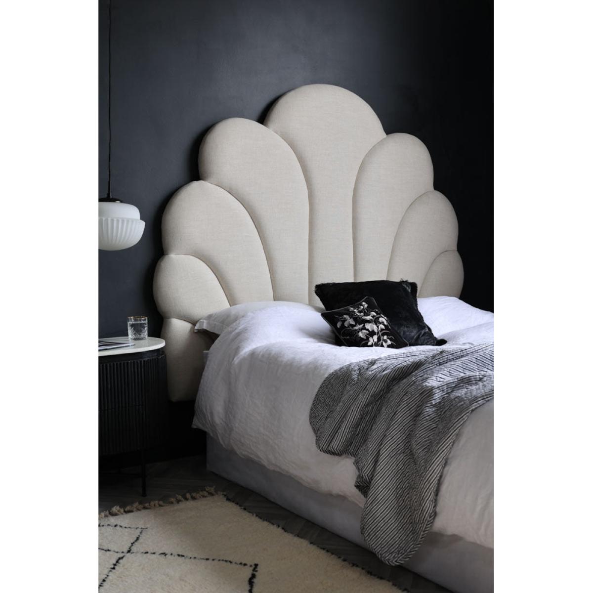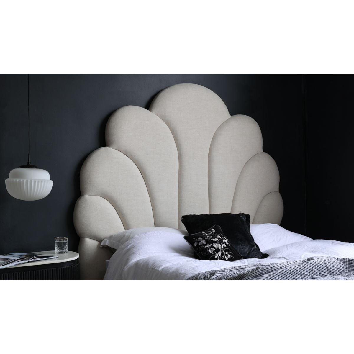 About The Beige Linen Super King HeadboardInjecting an alluring art-deco feature into your sleeping space, the Beige Linen Super King Headboard is a statement piece of bedroom furniture that’ll seamlessly transform your existing bedroom with its gorgeous characterful design. Featuring a pine wood frame with a foam filling, this beautiful headboard is made from a super soft lightweight velvet in a glamorous scalloped design and beige colourway. Giving your existing decor a boost of standout style, this beige headboard can be paired with a range of bedroom interiors and can be dressed up or down to create an elegant yet sophisticated focal point for the room. Measuring 158cm in height and 193cm in width, this linen headboard is suitable for a super king bed. Why We Think You’ll Love The Linen Scalloped HeadboardIf you’re a lover of GLAM GLAM GLAM, then this extra-large headboard is the one for you! Evoking the artistic patterns and designs of the art nouveau era, this unique headboard exudes a delightful dreamy and stylish appearance that is super comfortable too. A truly luxurious way to create a gloriously stylish bedroom scheme, this art deco headboard is a total stunner!How To Style The Beige Linen HeadboardCreate a heavenly bedroom scheme that never fails to disappoint by styling this bed headboard with a variety of neutral-toned bed covers for a serene sleeping space that you simply won’t be able to leave. If you’re a lover of a boldly beautiful interior, accentuate the drama of the piece by layering sumptuous gold-toned soft furnishings such as embellished cushions and throws.
