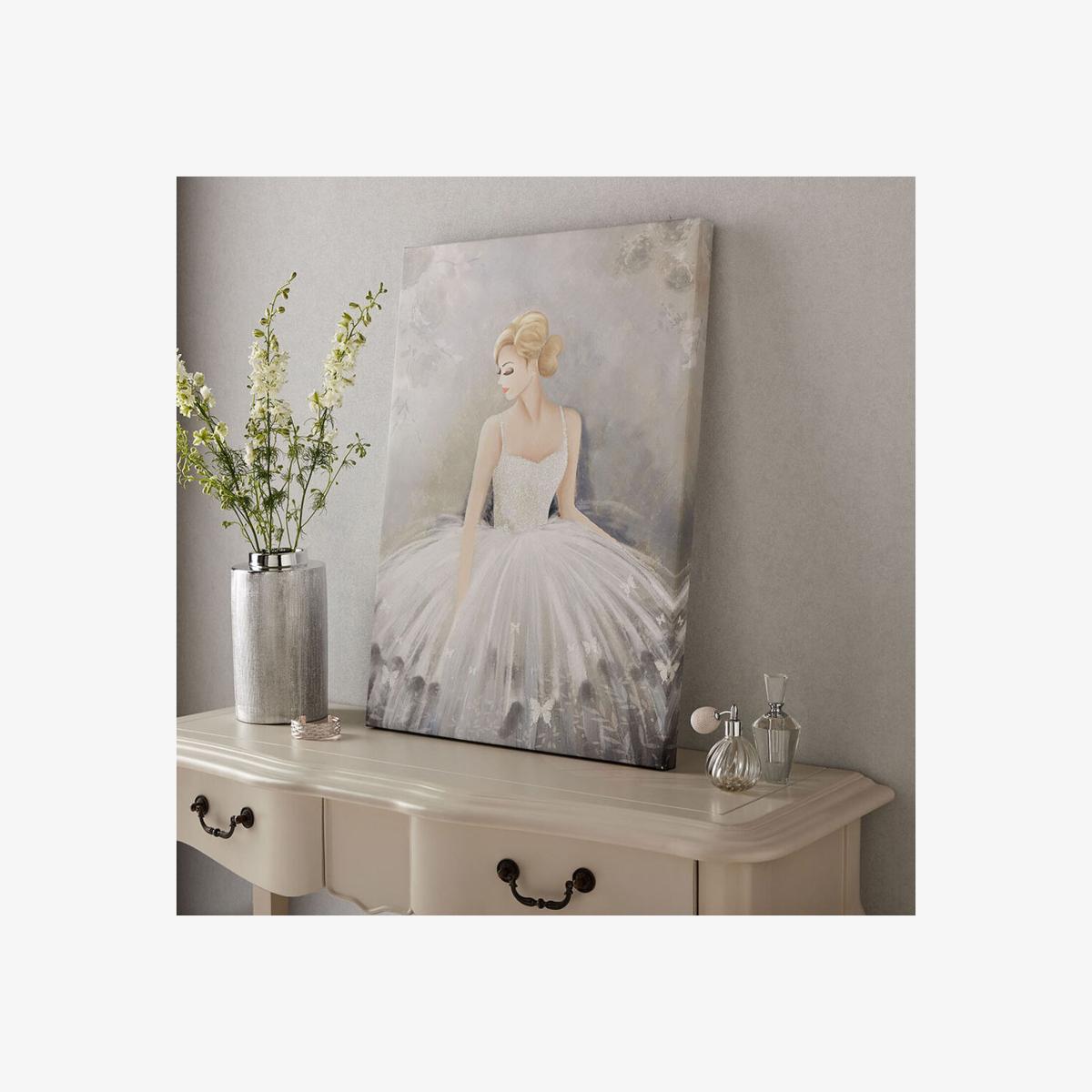 Art for the Home Beautiful Ballerina Glitter Printed Canvas - Grey