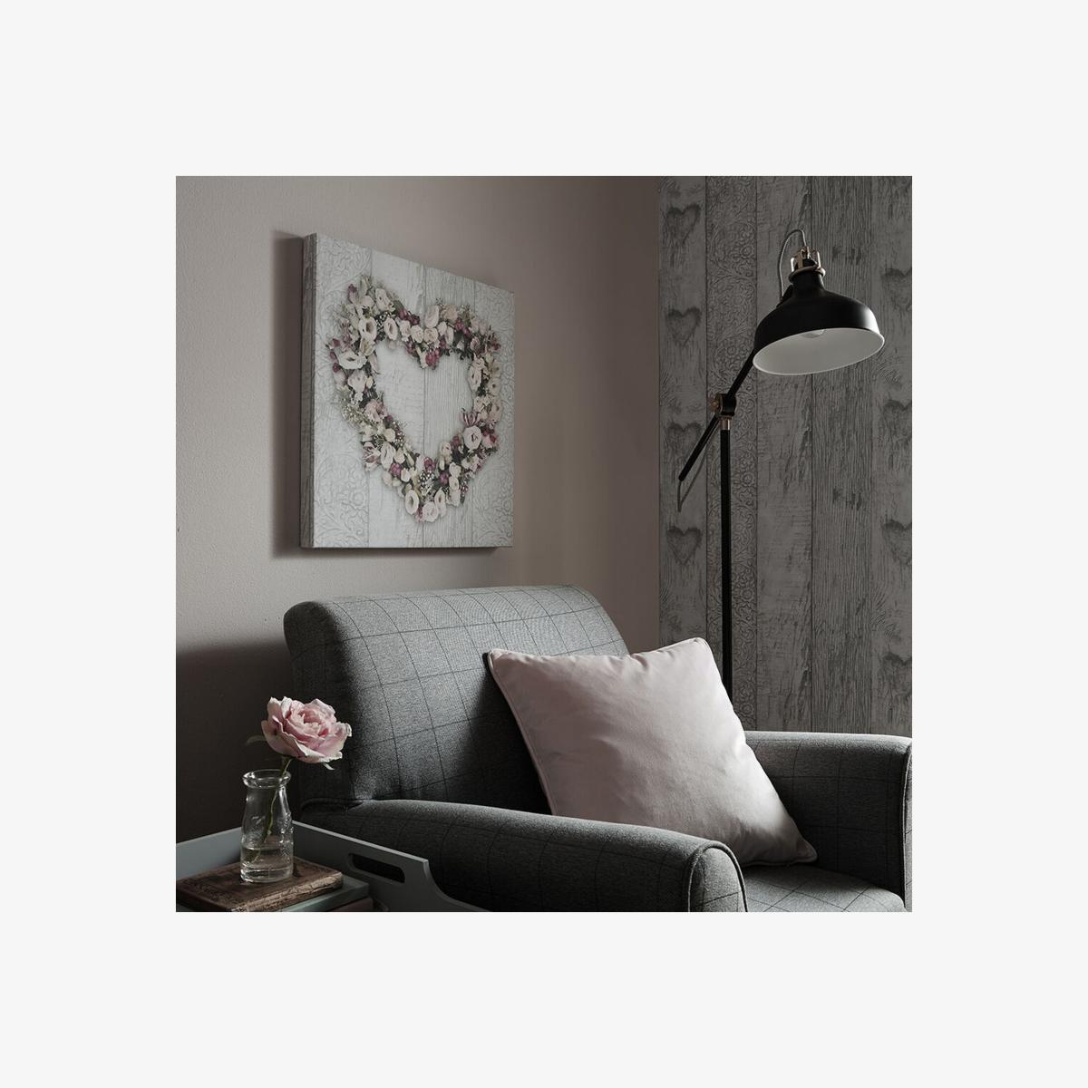 Bring love and life to your walls with this beautiful floral heart printed canvas. This gorgeous design features a heart shape created from gorgeous floral blooms in beautiful tones of pinks. Perfectly sat upon a grey wood background for a hint of shabby chic, this elegant wall art piece is perfect to add a stylish finishing touch to your home.