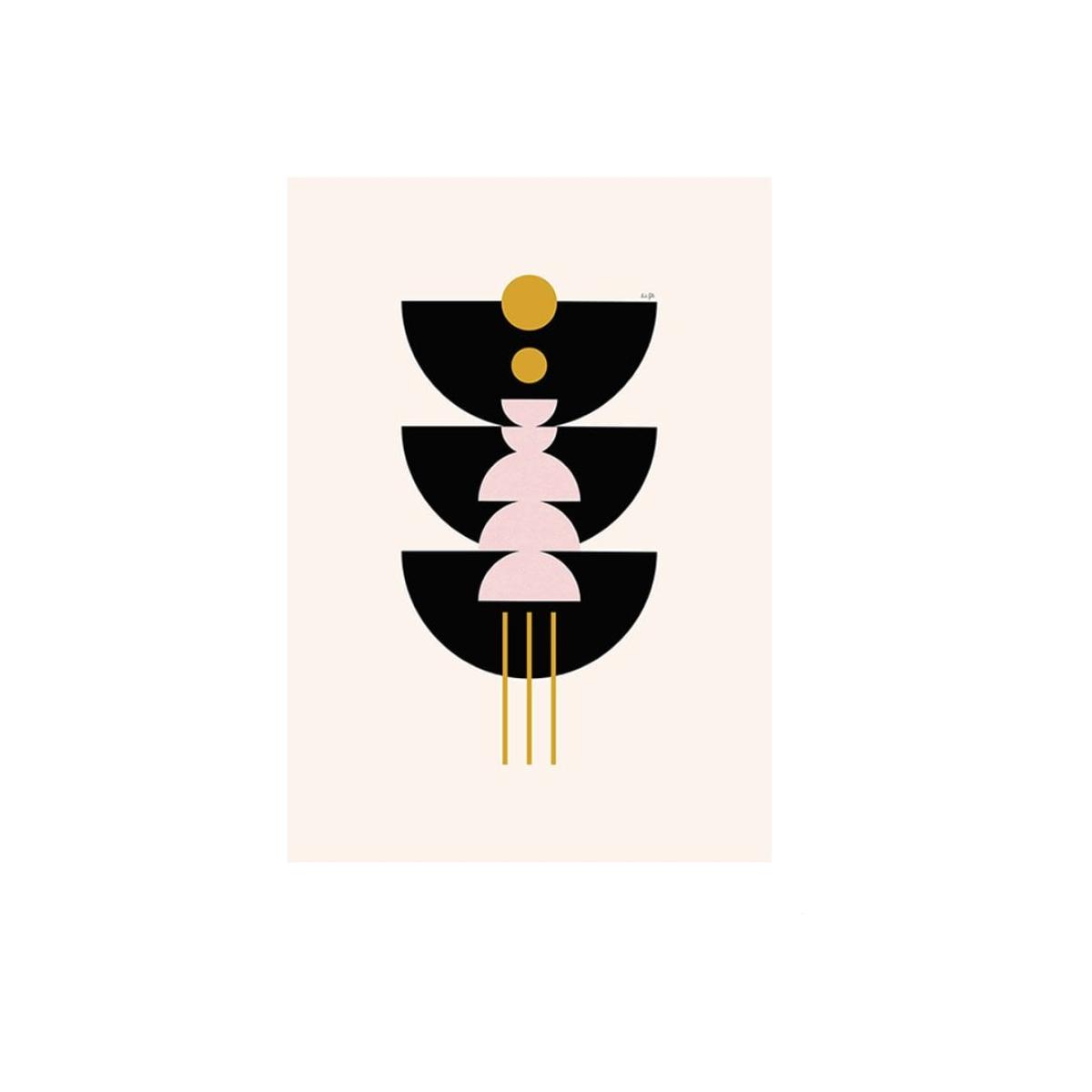 The symmetrical design of the Art of Balance Print III is mesmerising to say the least. The subtle use of mustard and pale pink amongst the black semi-circles is so chic. Only giclée printing processes are used for this print resulting in the highest quality museum-level colours and sharpness. Choose between a number of different coloured frames and three sizes for the perfect print for your space.