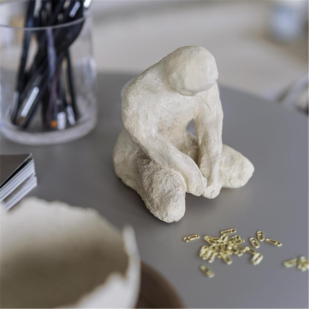 I love the meditation man sculpture for its minimalist and tranquil aesthetic, which works beautifully in modern and contemporary interiors. Its neutral tone and clean lines make it a versatile piece that can sit comfortably on a side table, bookshelf, or even a mantlepiece. To style it effectively, consider pairing it with natural materials such as wood or stone to enhance its calming vibe, or place it alongside greenery for a touch of softness. This sculpture is perfect for creating a peaceful focal point in a living room or an office nook, adding a subtle sense of mindfulness without overwhelming the space.