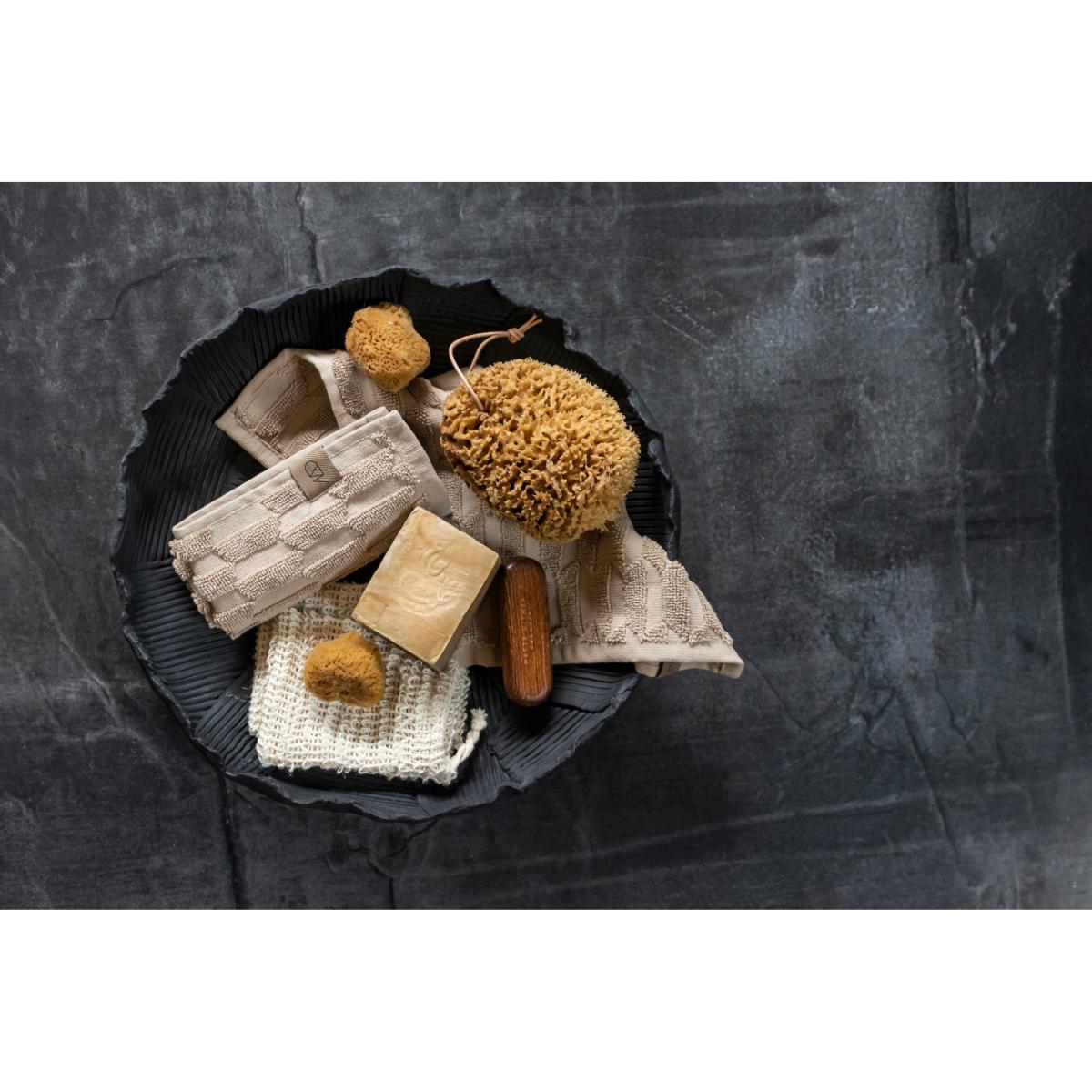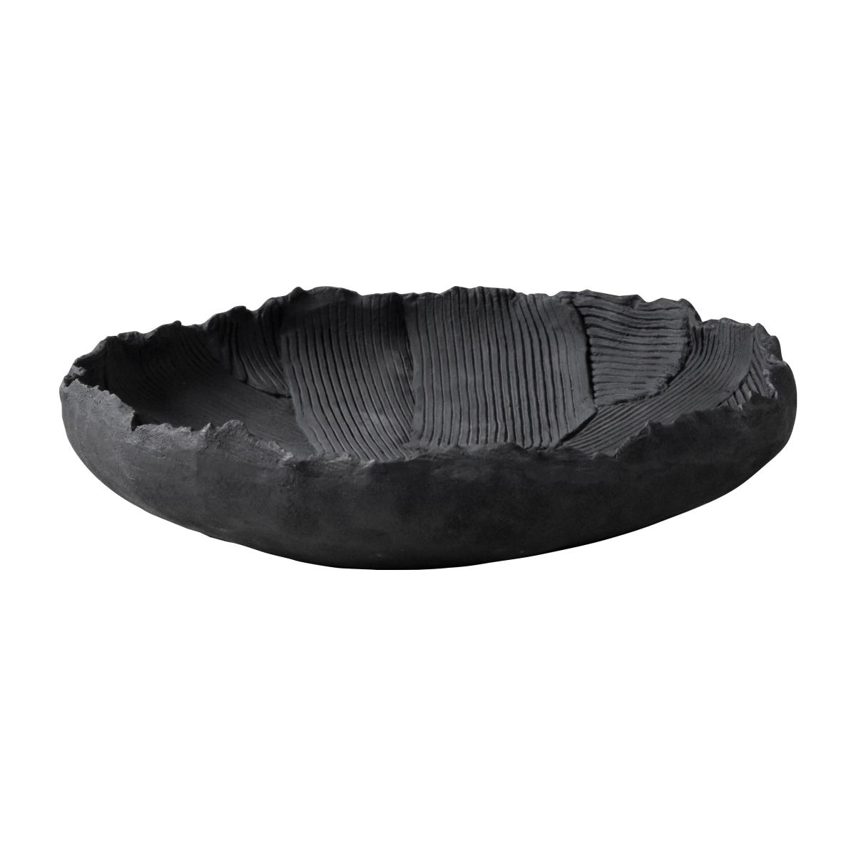 Art piece patch bowl Ø35 cm from Mette Ditmer is made of stone resin and has a round design with a rough edge and an inside decorated with overlapping stripes. The deep plate has an eye-catching structure that contributes unique character to your home. It looks lovely displayed on its own or with other items in a large display.