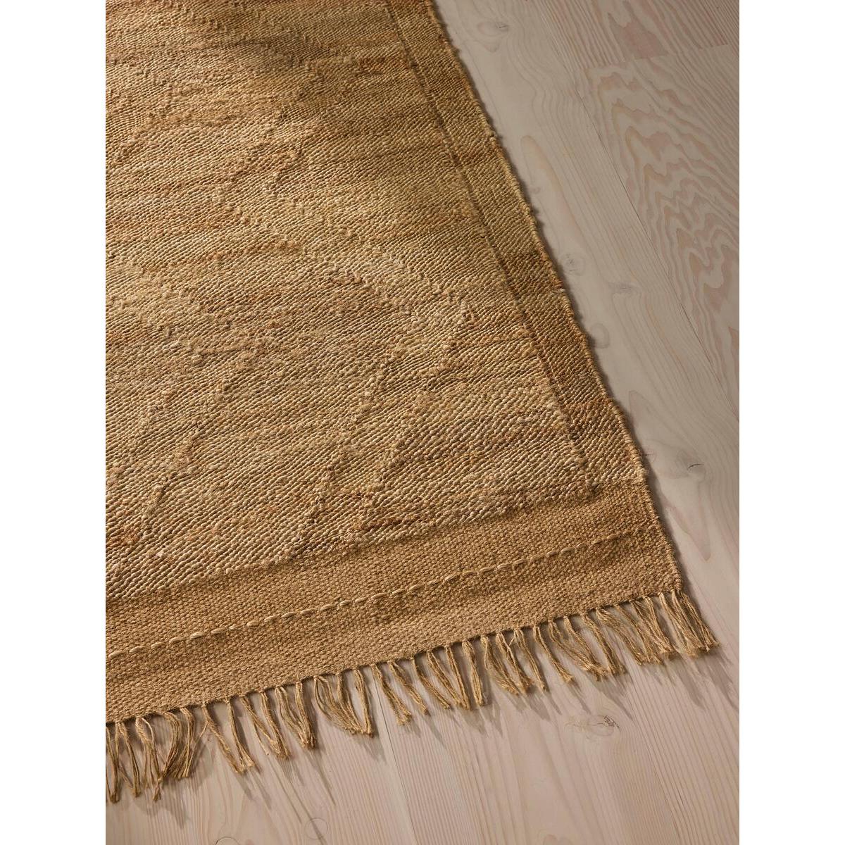 We have placed the subtleties of jute's natural fibres centrestage with our Arta rug. The flatwoven zig-zag design is formed by the weave construction, with the change in direction of the yarn highlighting the natural variations of colour and texture. Every rug has different variations, meaning each one is unique to the next, for a special accent piece in the home. The warm, neutral tones complement any colour scheme and also work with timber, stone or ceramic floor tiles to add warmth and tactility, as well as durability. We like to layer over larger, contrasting hand-knotted rugs in areas of high footfall; this is why you will see many jute designs in our country Houses. Jute rug Flatwoven zig-zag construction Designed in-house Each rug is unique to the next Works in any interiors scheme Border and hand-fringed detail Available in a range of sizes Inspired by our country Houses