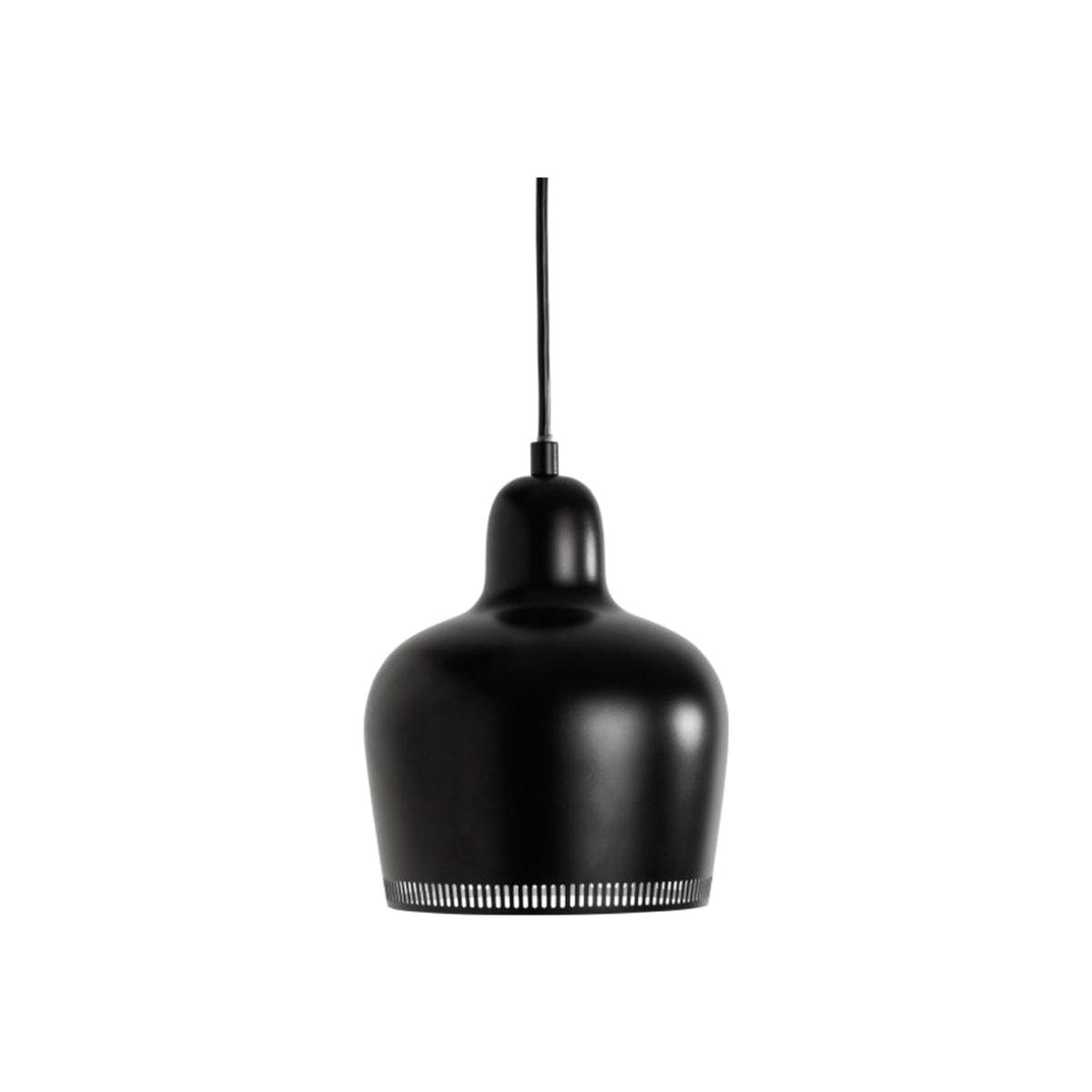 Alvar Aalto designed the A330 S Golden Bell Pendant Light in 1937 for The Savoy Restaurant in Helsinki. Its bell-shaped, hand-spun metal shade features a perforated rim that casts a memorable glow throughout the room when lit. Its sculptural aesthetic means it can be appreciated even when unlit.