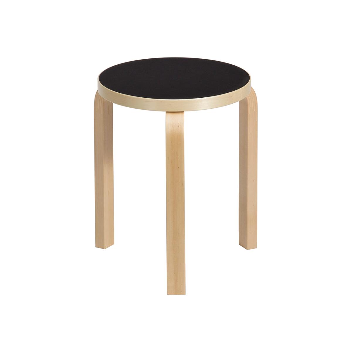 Artek Stool 60 Natural Birch Black Linoleum Seat - Heal's UK Furniture