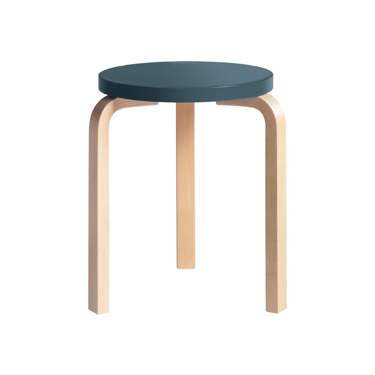 Artek Stool 60 Natural Lacquered Birch Blue Lacquered