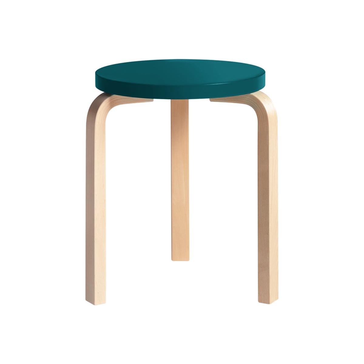 Artek Stool 60 Natural Lacquered Birch Petrol Lacquered