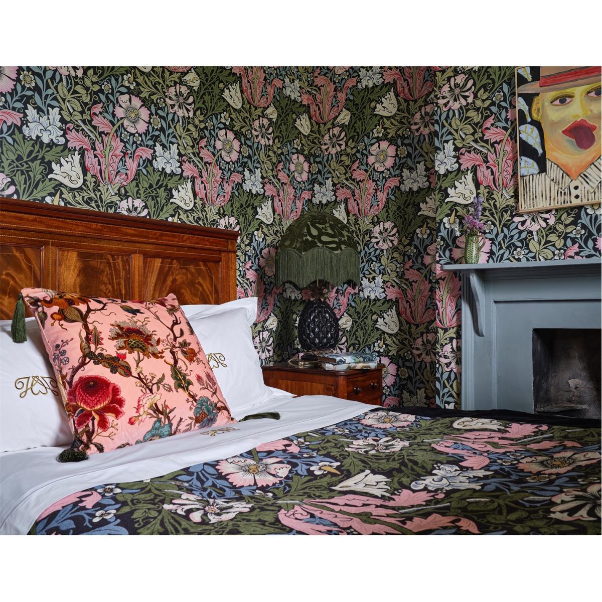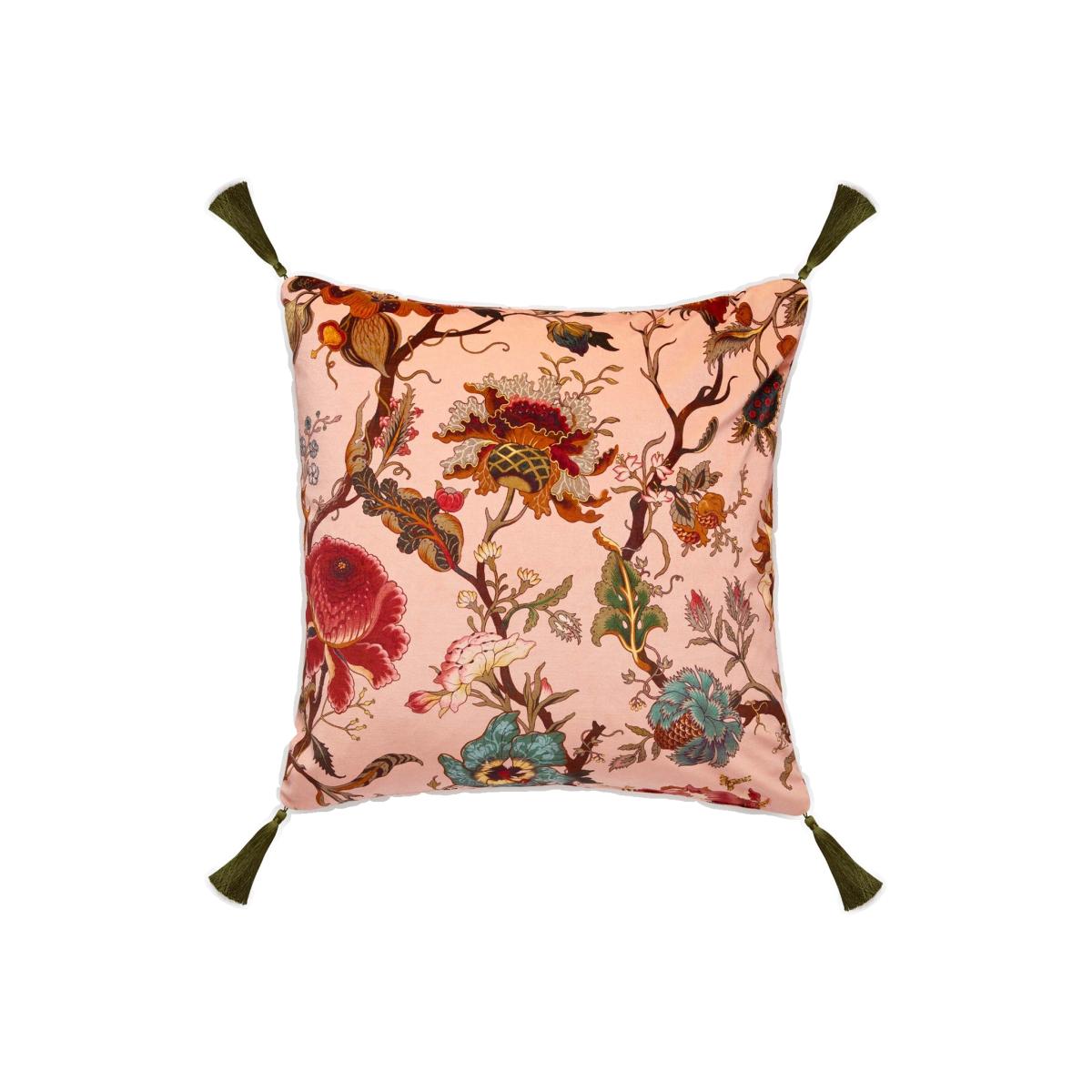 Paying tribute to legendary Vogue editor Diana Vreeland's 'Garden in Hell' room, the Artemis cushion from House of Hackney blends beautiful florals with a pretty blush pink colourway. Made in England from luxurious British velvet, olive-green tassels punctuate each corner. Each item sold enables House of Hackney to purchase and protect 35 sqm of forest through its partnership with the World Land Trust.