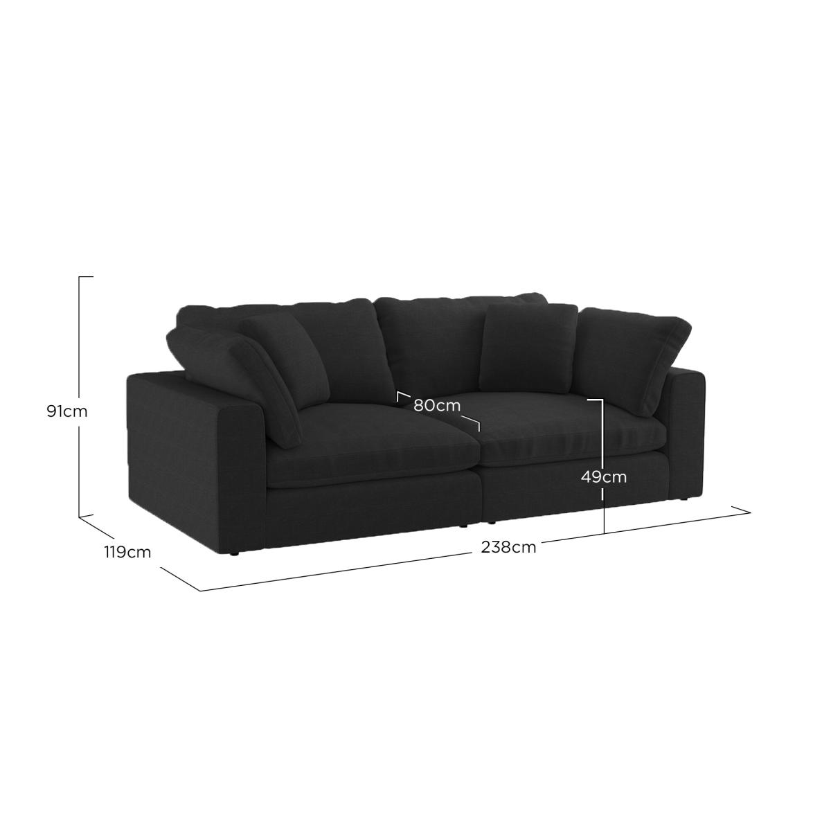Immerse yourself in contemporary comfort with the lavish Artenis 3 Seater Sofa. Abundantly filled with Qualofill blue fiber, it showcases low arms, continuous depth, and sloped back cushions for unmatched relaxation. Ideal for cozy movie nights with loved ones, this sofa seamlessly complements your home, imparting a warm and inviting atmosphere. The premium Qualofill blue fiber ensures exceptional comfort and resilience, promising enduring support and an ever-inviting feel. Elevate your living space with this meticulously crafted sofa, fashioning a stylish and cozy sanctuary.