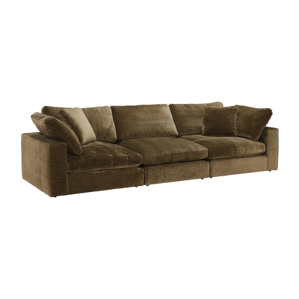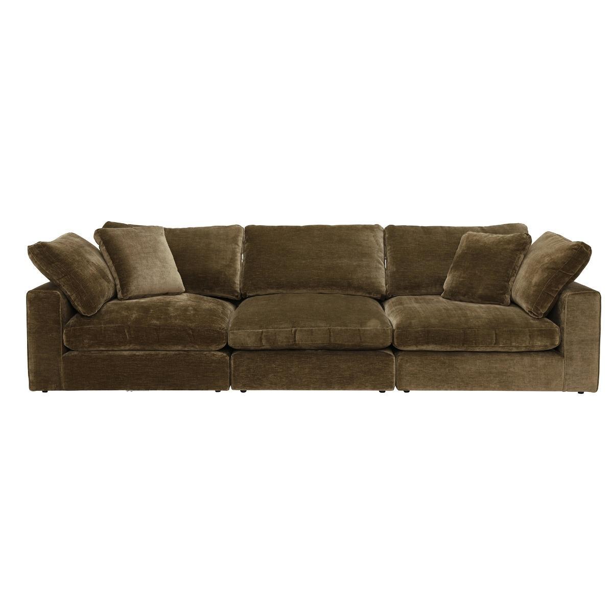 I love this modular three-seater because it offers excellent flexibility for different living spaces and setups. Its plush, inviting look is perfect for both contemporary and vintage-inspired interiors, especially in cosy, lived-in schemes or eclectic spaces. The earthy tone is versatile, working well with neutral palettes or adding warmth to more colourful rooms. Style tips include layering with textured cushions and throws to create a relaxed, welcoming vibe. Its modular nature also means you can reconfigure it for different occasions or room layouts, making it a practical choice for adaptable living. Pair it with a mix of statement lighting and simple furniture to keep the focus on its comfortable form.