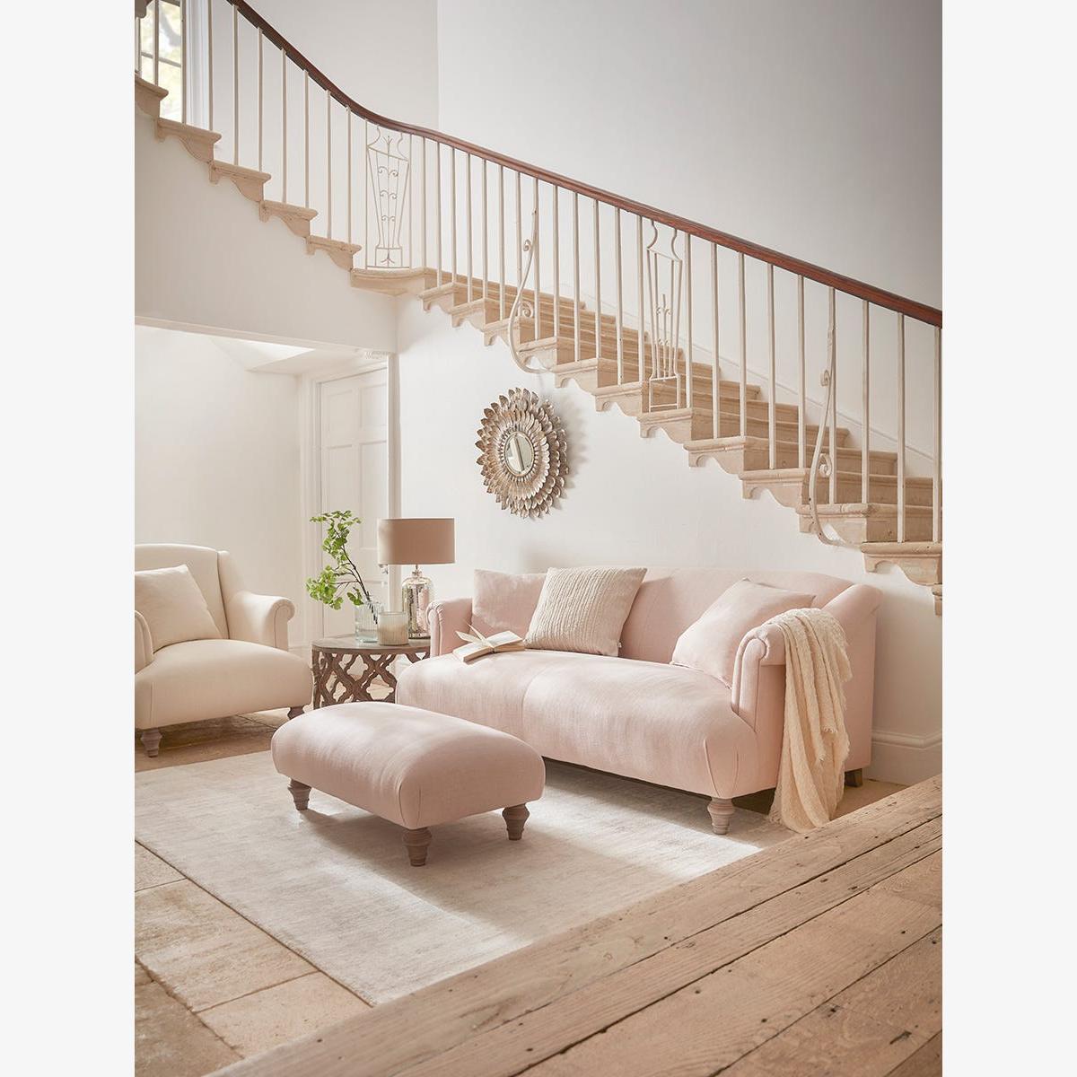 The traditional lines of our Artes range provides a warm-hearted silhouette that will sit timelessly in your home. The classic English roll arm styling, which has been around since the 1800s, means the sofa is well upholstered throughout, making it an enviably comfortable piece that translates well in modern family life. The bottom frame echoes the curve of the arms, creating a welcoming and attractive outline and a fully sprung T-cushion seat makes for a luxurious but supportive place to settle. The fixed seat dispenses with the need for energetic plumping and each sofa comes with two matching feather filled scatter cushions. The Artes range includes two seater and three seater sofas, an armchair and an ottoman. Our Artes collection can be upholstered in a choice of 34 distinctive shades and six fabrics to suit your style. Read our Upholstery FAQs View our full Upholstery Terms and Conditions