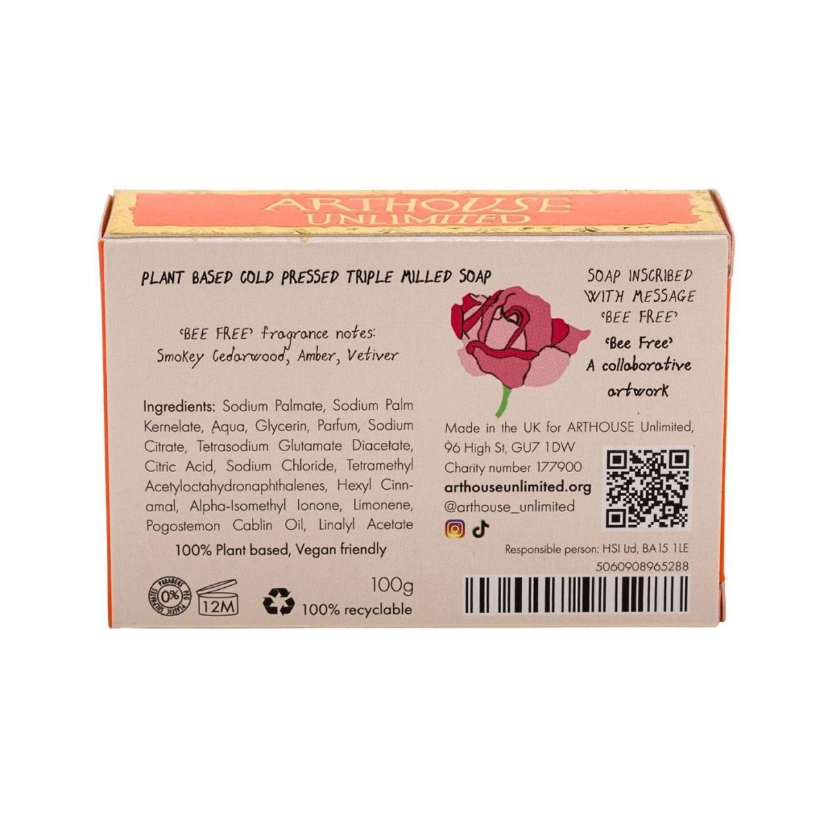 This opulent plant based cold pressed soap, is gently fragranced with smoky cedar wood, amber and vetiver. Featuring the collaborative 'Bee Free' artwork, the 100g paraben-free soap is triple milled for a longer-lasting luxurious lather.
