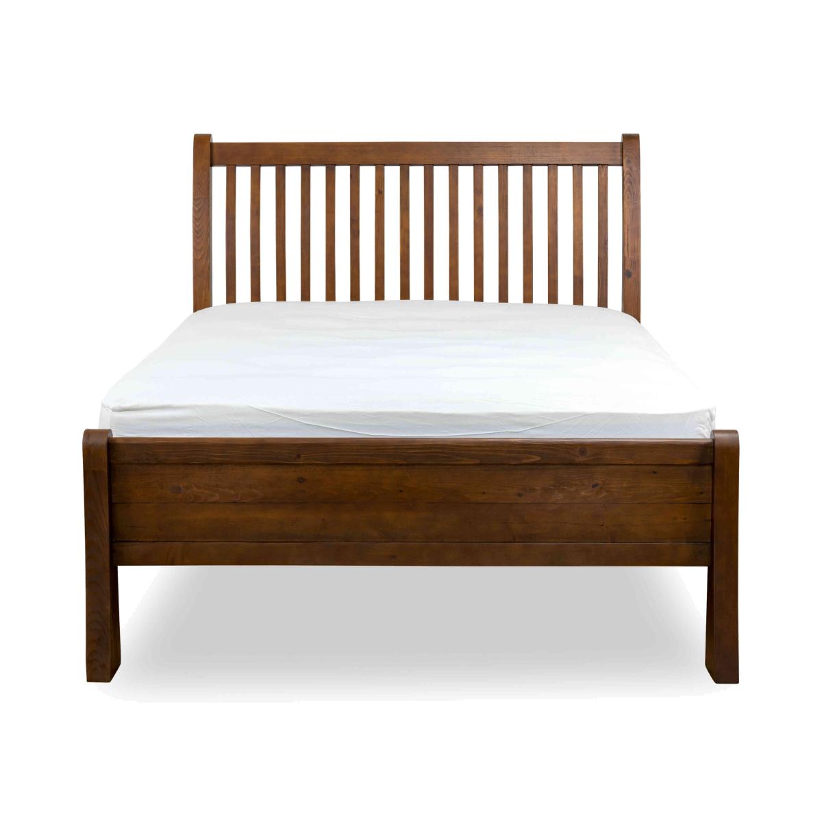 The Arthur bedroom range is full of character. Drawing inspiration from classic French furniture design, the range is full of distinctive nods to tradition, such as the softly bow-curved fronts and cut-out feet of the chests of drawers and wardrobe. Every piece has a timeless appeal to it, calling back to more understated designs of the past. It’s kinder to the planet, too, as it’s all handmade using reclaimed wood. The solid pine construction has a rich, warm colour to it, showcasing the natural beauty of the material. And, best of all, it’s built to last, using sturdy dovetail joints that will stand up to years of use. Sometimes sticking to tradition is the right move, and when it comes to this classic wooden bed frame, it most certainly is. Give your home a touch of heritage with this understated piece. Why you'll love it Bring the timeless appeal of classic French style to your home. Made from reclaimed pine so it’s kinder to our planet. Handcrafted with super-sturdy dovetail joints. Available as a double, king, or super king. This bed frame is part of the Arthur bedroom furniture range. What you need to know Solid hardwood slats. Pine surfaces will show variation in colour. Knots, filled knots, and other markings are to be expected. Avoid placing in direct sunlight or close to a heat source. Love the look? Be sure to browse the rest of the Arthur bedroom range.
