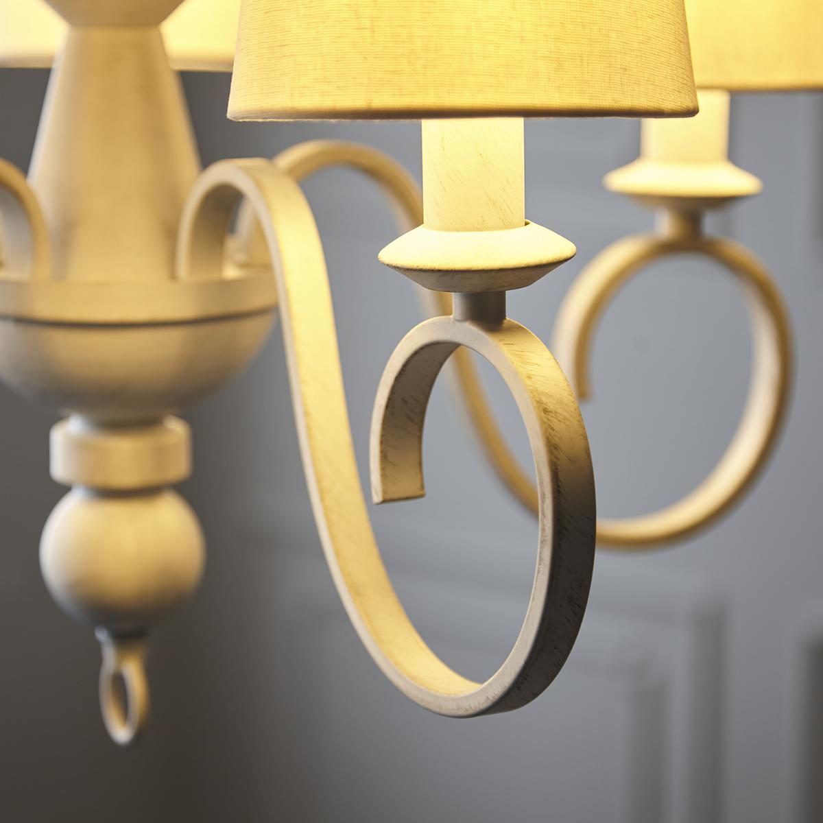 Step into an era of classic elegance with this vintage pendant light. Crafted with meticulous attention to detail, this pendant features aged white finish metal detailing and fabric shades that add a touch of softness and warmth to the home.