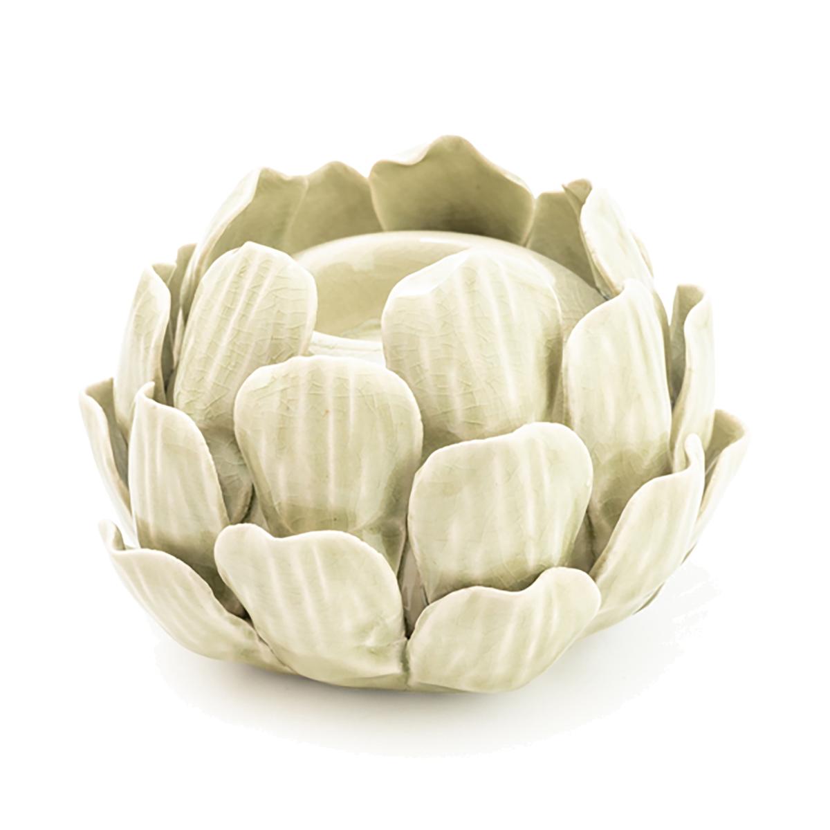 The Artichoke Candleholder in Green showcases a beautifully detailed design, inspired by the natural structure of an artichoke. With its rich green finish, this candleholder adds a touch of earthy elegance to your decor. Perfect for holding candles, it brings a warm, inviting ambiance to any room while serving as a stylish, nature-inspired accent piece.