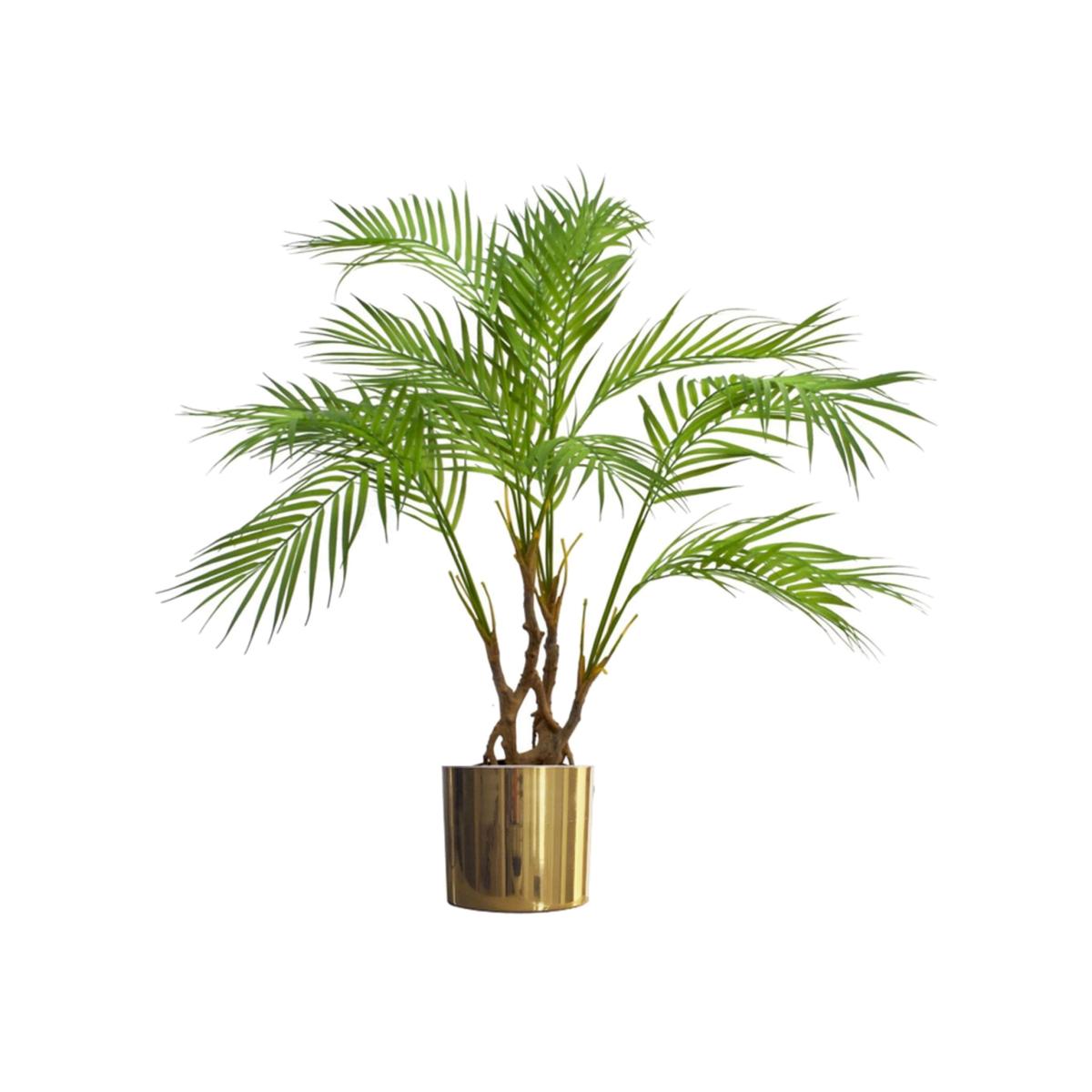 This artificial areca palm is potted in a plain plastic pot and is fully assembled. Comes with a metal planter it can be placed inside as shown in our pictures. These plants are designed to be put inside a larger planter to display and you can add soil , gravel or bark around them to make them look even more realistic. Realistic twisted wood effect stem. It comes potted in a plain plastic pot and includes a separate metal planter for it to sit inside as shown so it is ready to display. Plant and planter can be used separately if required. Crafted from high quality material, Leaf Design UK plants are extremely realistic.
