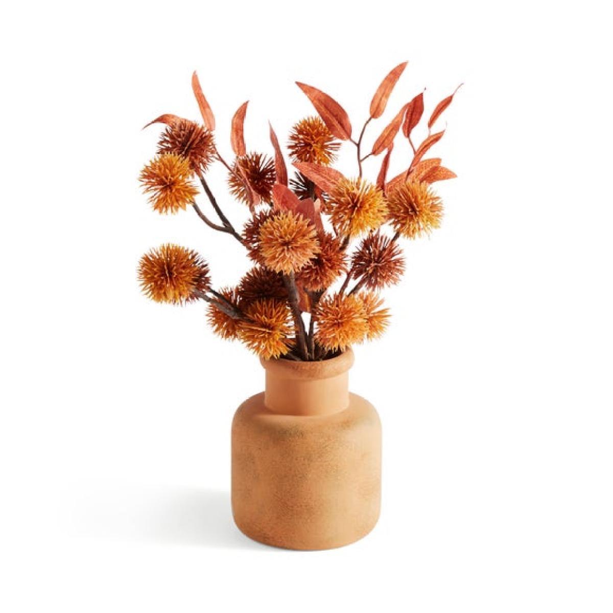 * Artificial arrangement * Stylish terracotta vase * No maintenance needed * Mix of shapes and textures Bring the beauty of nature into your home with the Artificial Autumn Floral Arrangement in a Washed Terracotta Vase. This realistic display requires no maintenance, making it a beautiful and effortless decorative item. It comes artfully arranged in a stylish washed terracotta vase, showcasing stunning autumnal colours and an eye-catching mixture of textures, shapes, and colours. It's ideal for shelf displays or as a table centrepiece, bringing seasonal style to any room.